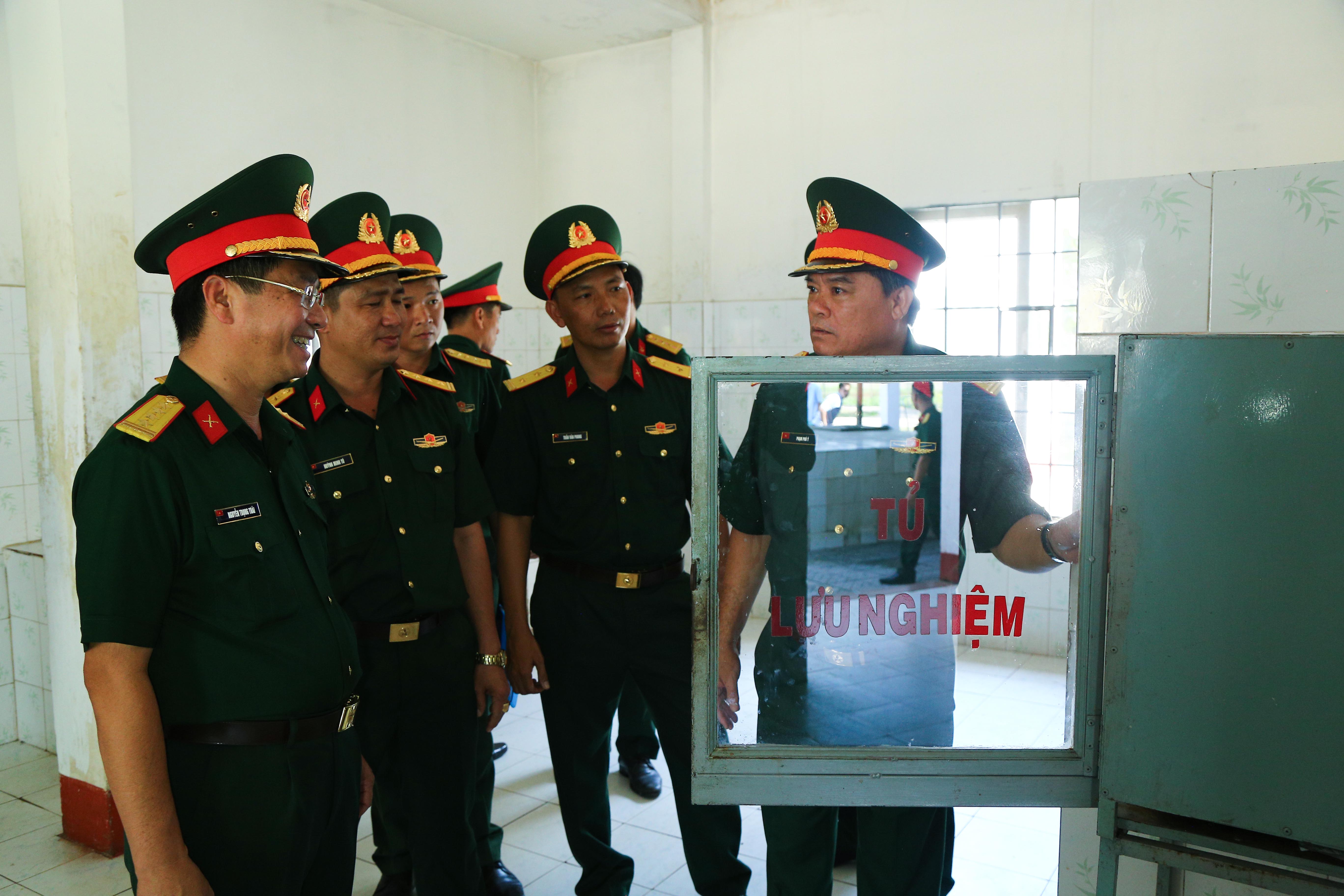 Đoàn kiểm tra tủ lưu nghiệm thức ăn của Trung đoàn 271.