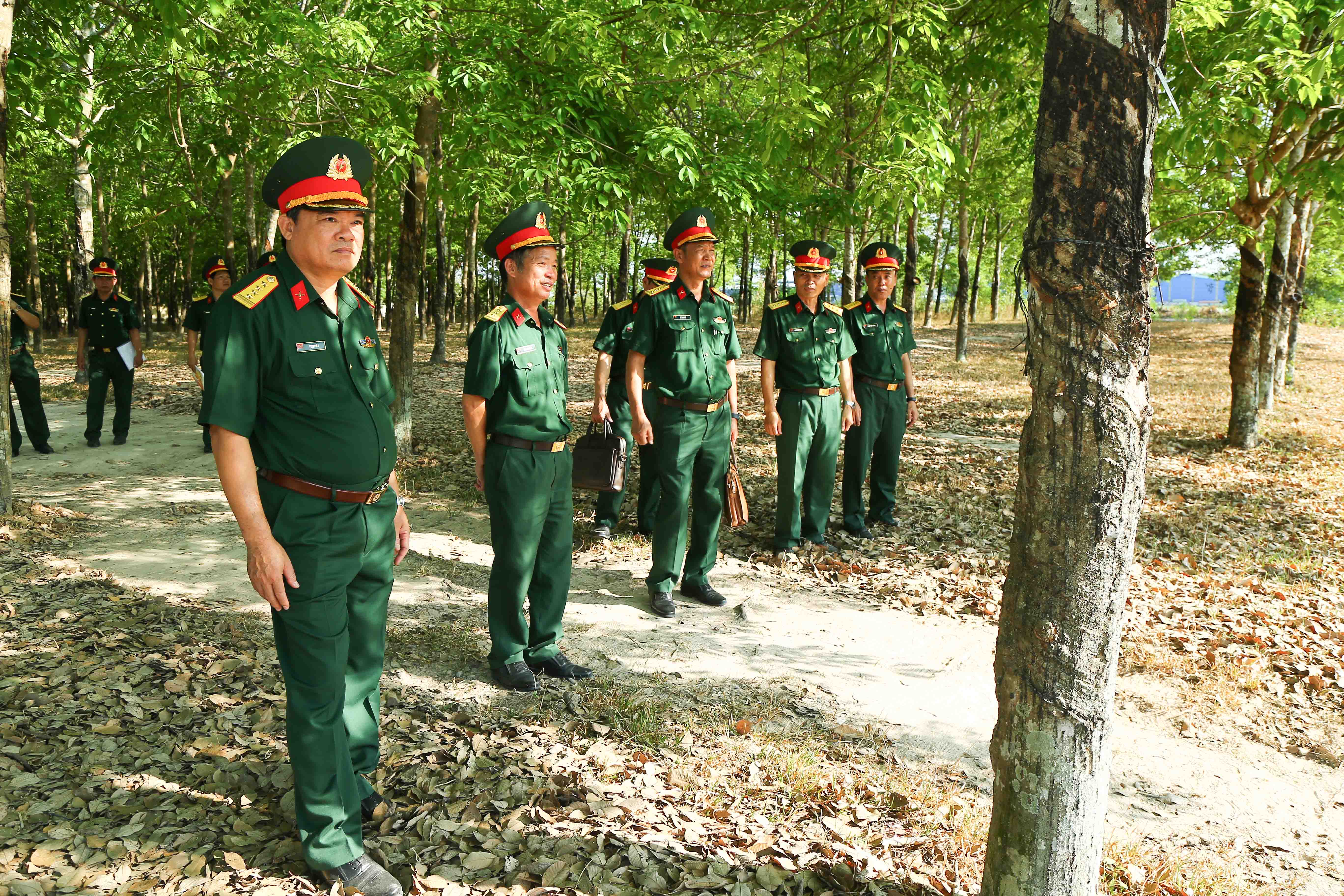 Đại tá Phạm Phú Ý và đoàn công tác kiểm tra thao trường huấn luyện CSM của Trung đoàn 6.