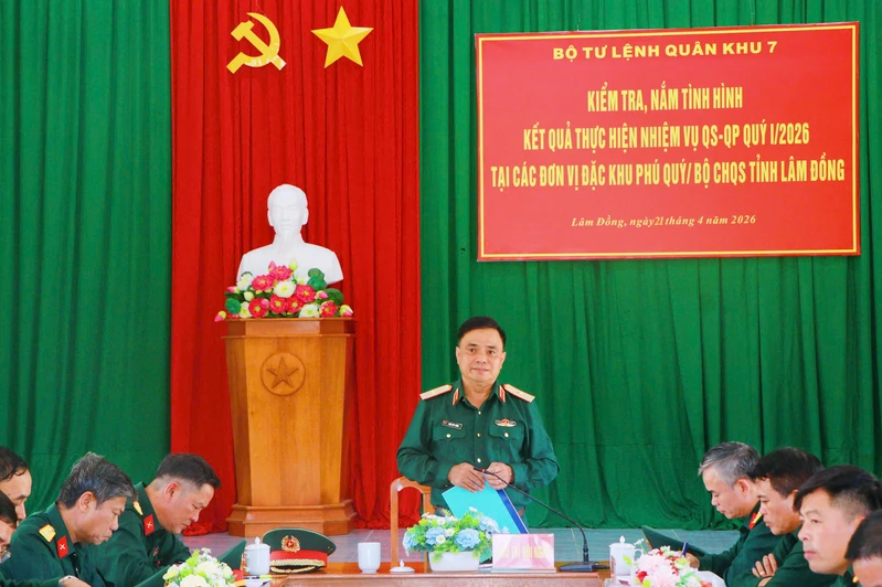 (QK7 Online) - Chiều ngày 21/4, thừa ủy quyền của Thủ trưởng Bộ Tư lệnh Quân khu 7, Thiếu tướng Trần Đức Thắng, Bí thư Đảng ủy Cục Chính trị, Phó Chủ nhiệm Chính trị Quân khu cùng đoàn công tác đã đến kiểm tra, nắm tình hình kết quả thực hiện nhiệm vụ quân sự - quốc phòng quý I năm 2026 các đơn vị tại Đặc khu Phú Quý, Bộ CHQS tỉnh Lâm Đồng. Tham gia đoàn có thủ trưởng các phòng, ban chức năng của Quân khu.