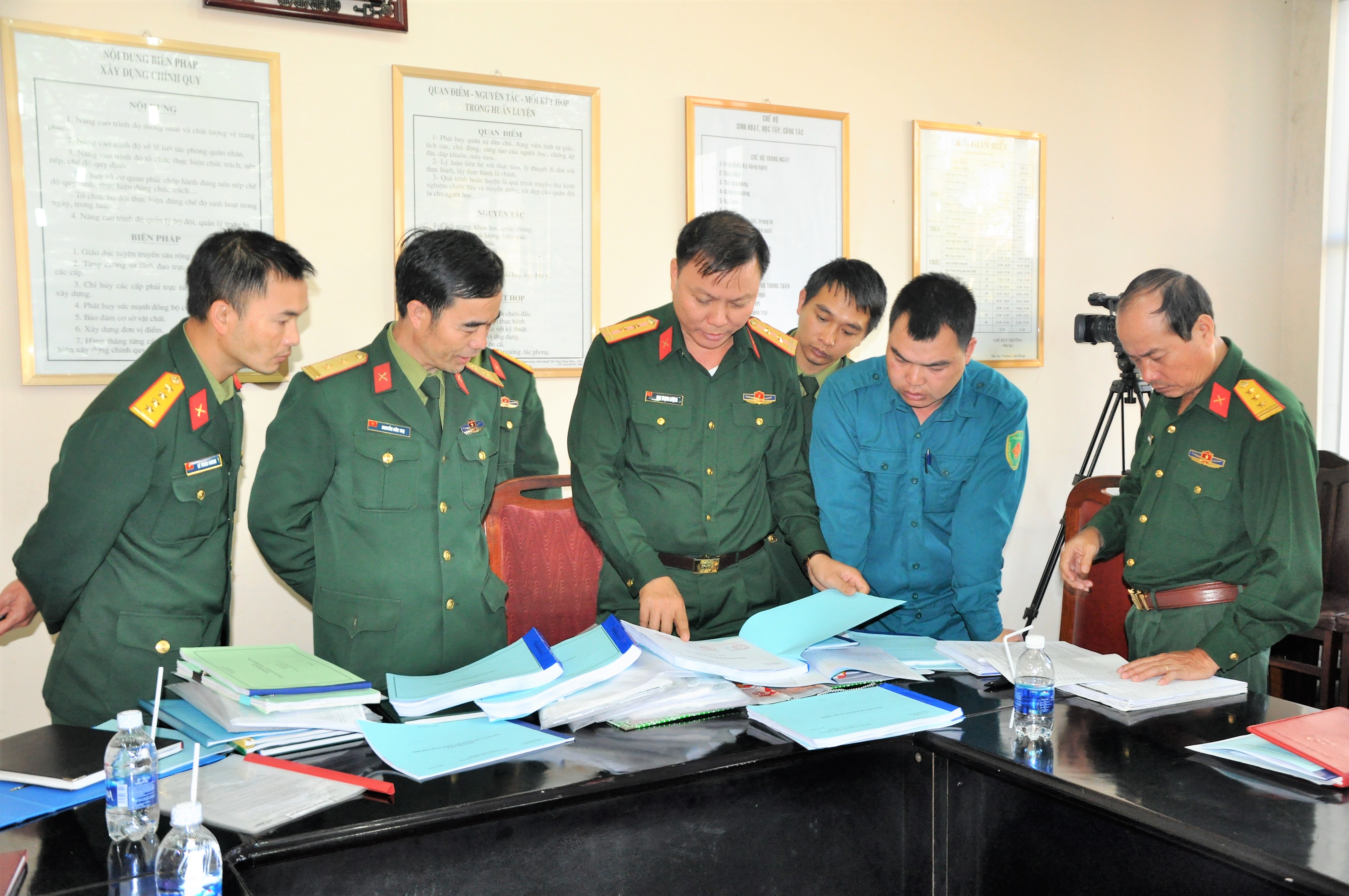 Đoàn công tác kiểm tra các văn bản, hồ sơ công dân nhập ngũ năm 2019.