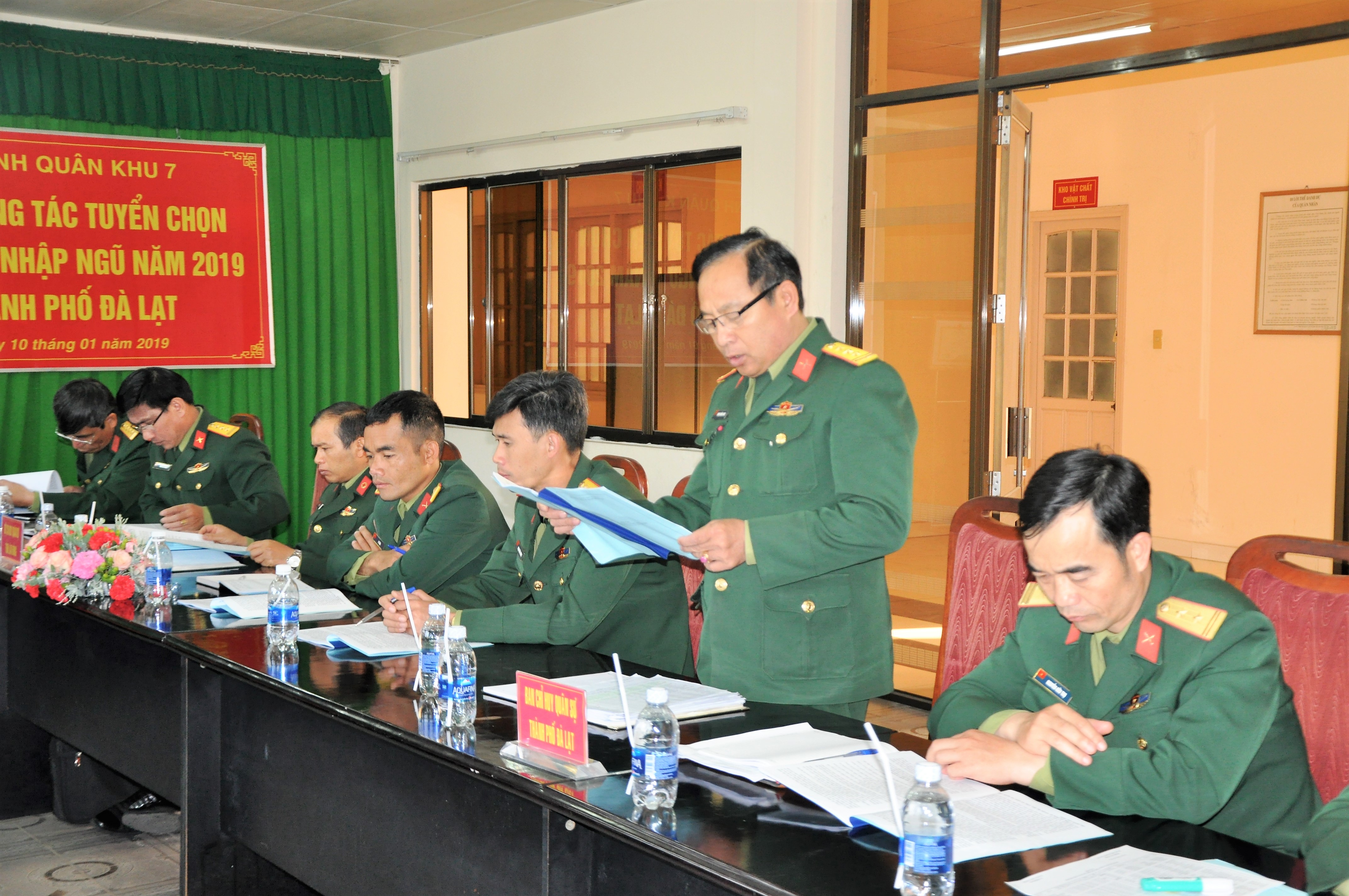 Lãnh đạo Ban CHQS Thành phố Đà Lạt báo cáo kết quả tuyển chọn, gọi công dân nhập ngũ năm 2019.