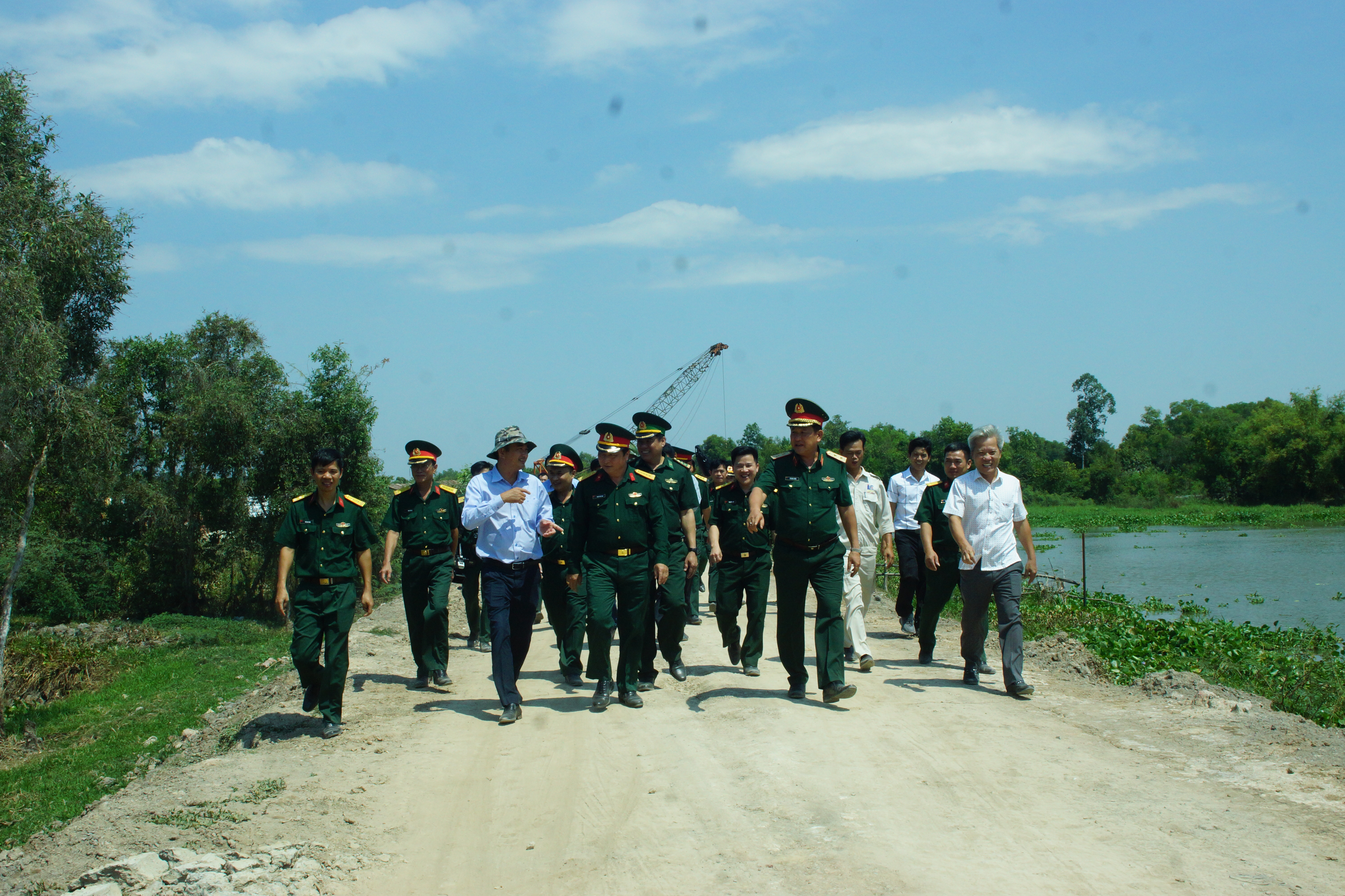 Trung tướng Võ Minh Lương, Ủy viên Trung ương Đảng, Tư lệnh Quân khu 7 kiểm tra dự án xây dựng đường tuần tra biên giới tỉnh Long An