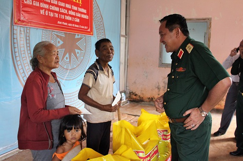 Trung tướng Võ Minh Lương, Tư lệnh Quân khu 7 tặng quà cho các gia đình có hoàn cảnh khó khăn tại Tiểu khu 119, thôn Hai Căn, huyện Bù Gia Mập.