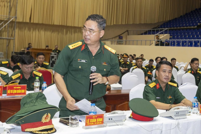 Đại tá Lê Xuân Bình, Phó Tư lệnh, Tham mưu trưởng Quân khu phát biểu ý kiến tại buổi sơ duyệt