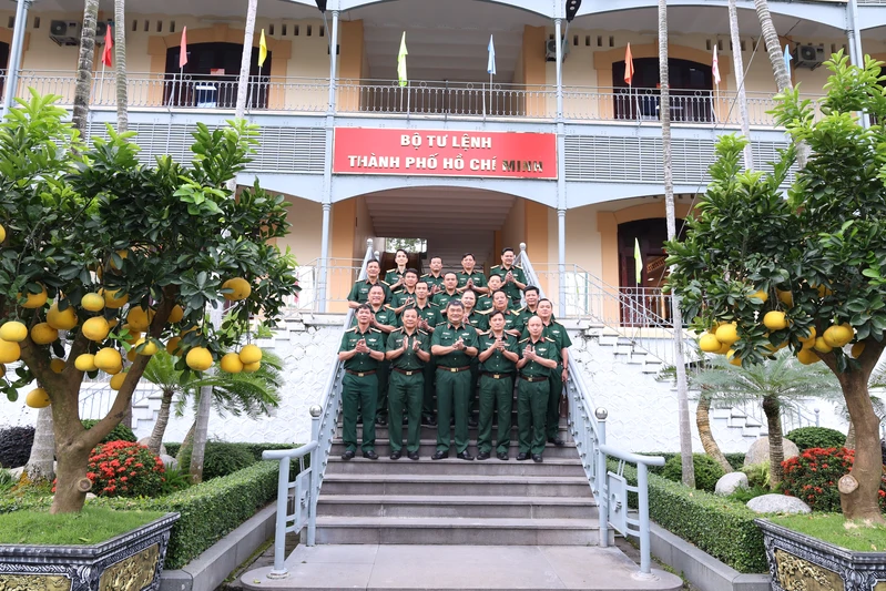 Trung tướng Lê Xuân Thế, Ủy viên Trung ương Đảng,Tư lệnh Quân khu cùng đoàn công tác chụp ảnh lưu niệm với Đảng ủy, Bộ Tư lệnh TP Hồ Chí Minh.