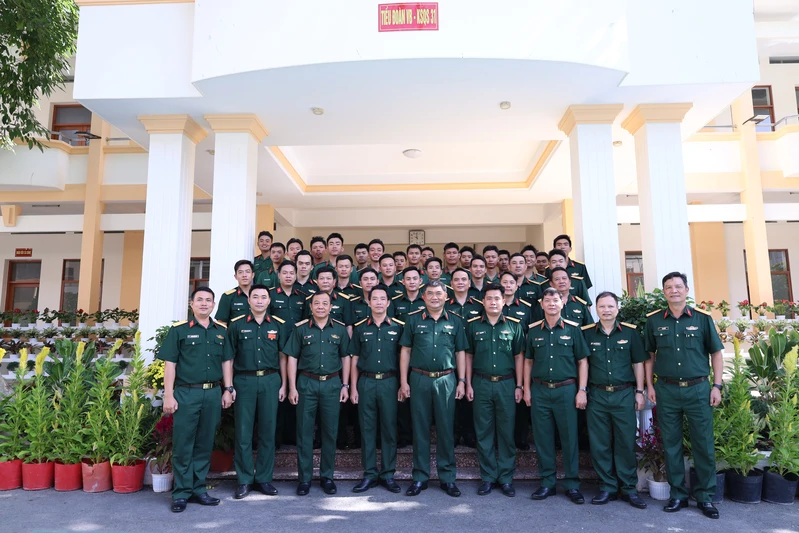 Trung tướng Lê Xuân Thế, Ủy viên Trung ương Đảng,Tư lệnh Quân khu cùng đoàn công tác chụp ảnh lưu niệm với cán bộ, chiến sĩ Tiểu đoàn Vệ binh - KSQS 31.
