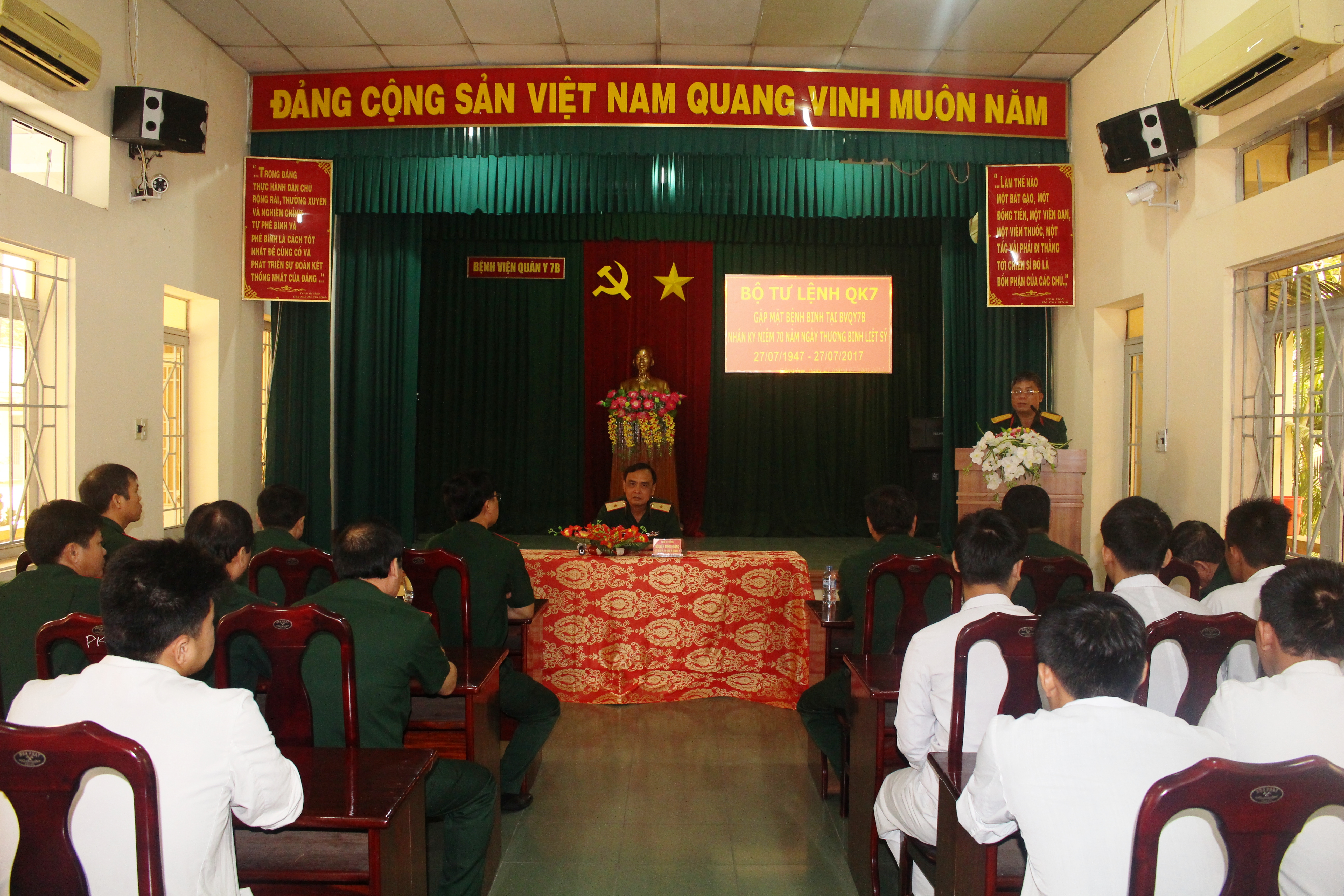 (QK7 Online) -Nhân dịp kỷ niệm 70 năm ngày Thương binh liệt sĩ (27/7/1947 - 27/7/2017),Bộ Tư lệnh Quân khu 7 do Thiếu tướng Nguyễn Minh Hoàng - Phó Chính ủy Quân khu làm trưởng đoàn đến thăm tặng quà các Bệnh viện 7A, 7B Quân khu 7, Bệnh viện 175 Bộ Quốc phòng và các gia đình chính sách, người có công với cách mạng trên địa bàn Quân khu.