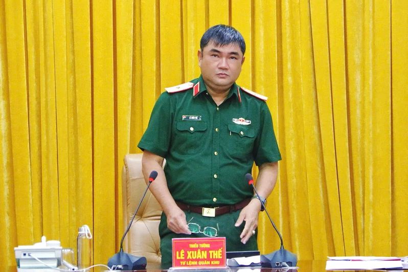 Thiếu tướng Lê Xuân Thế, Tư lệnh Quân khu chủ trì hội nghị.