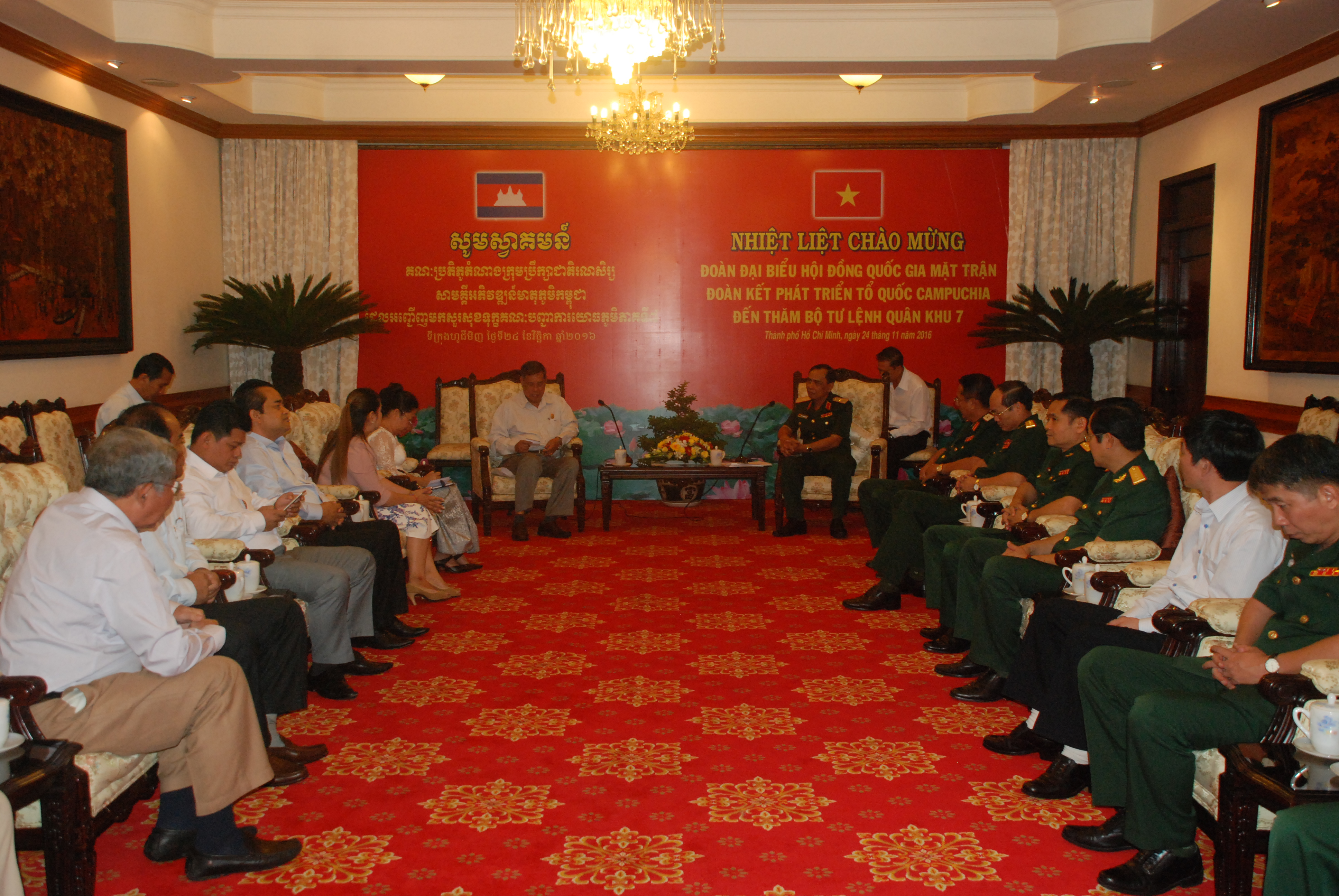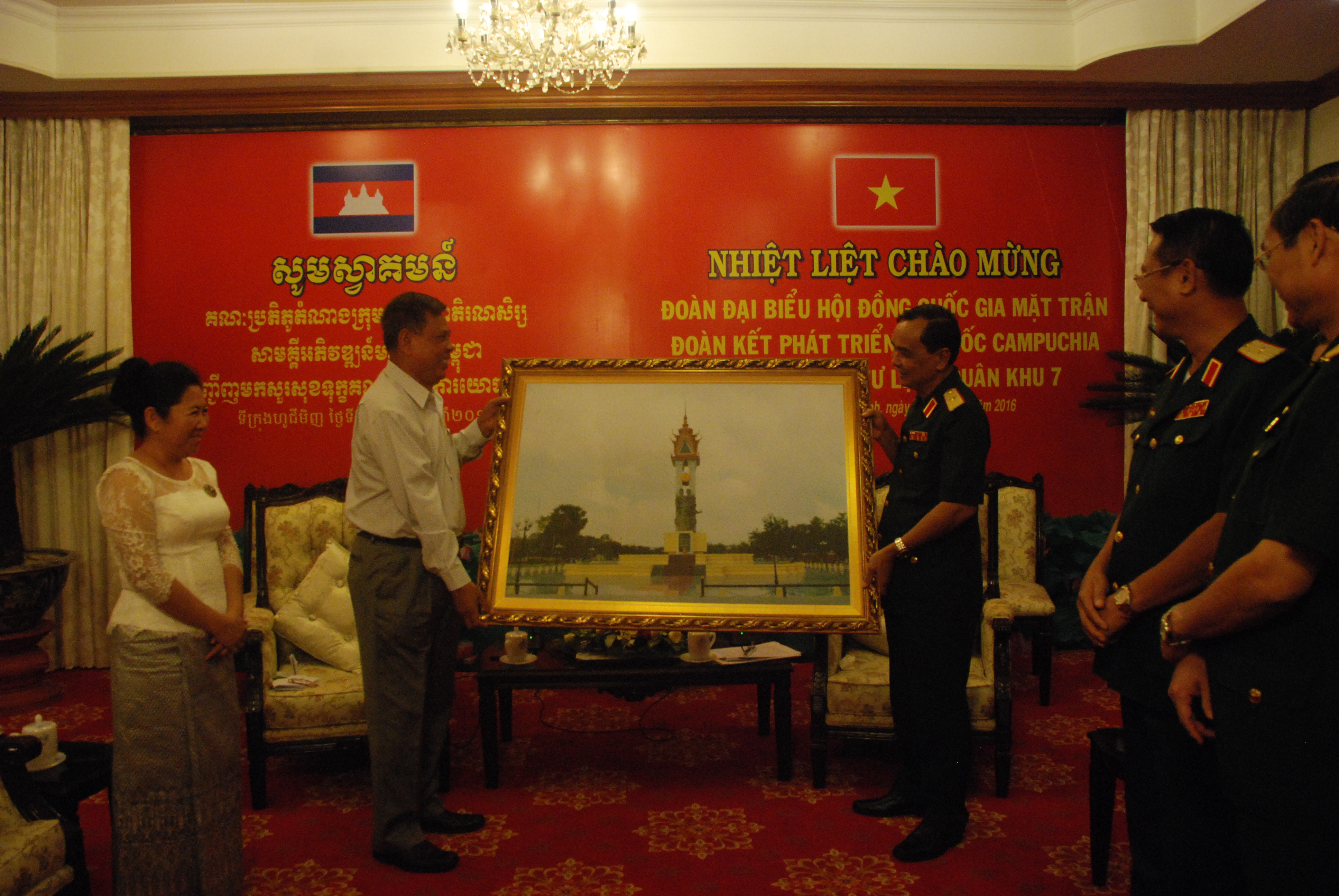 Bộ Tư lệnh Quân khu 7 tiếp đoàn Đại biểu Hội đồng Quốc gia Mặt trận Đoàn kết phát triển Tổ quốc Campuchia