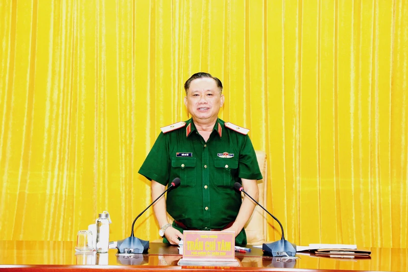 Thiếu tướng Trần Chí Tâm, Phó Chính ủy Quân khu, Trưởng Ban Tổ chức Lễ kỷ niệm gợi ý nội dung thảo luận.