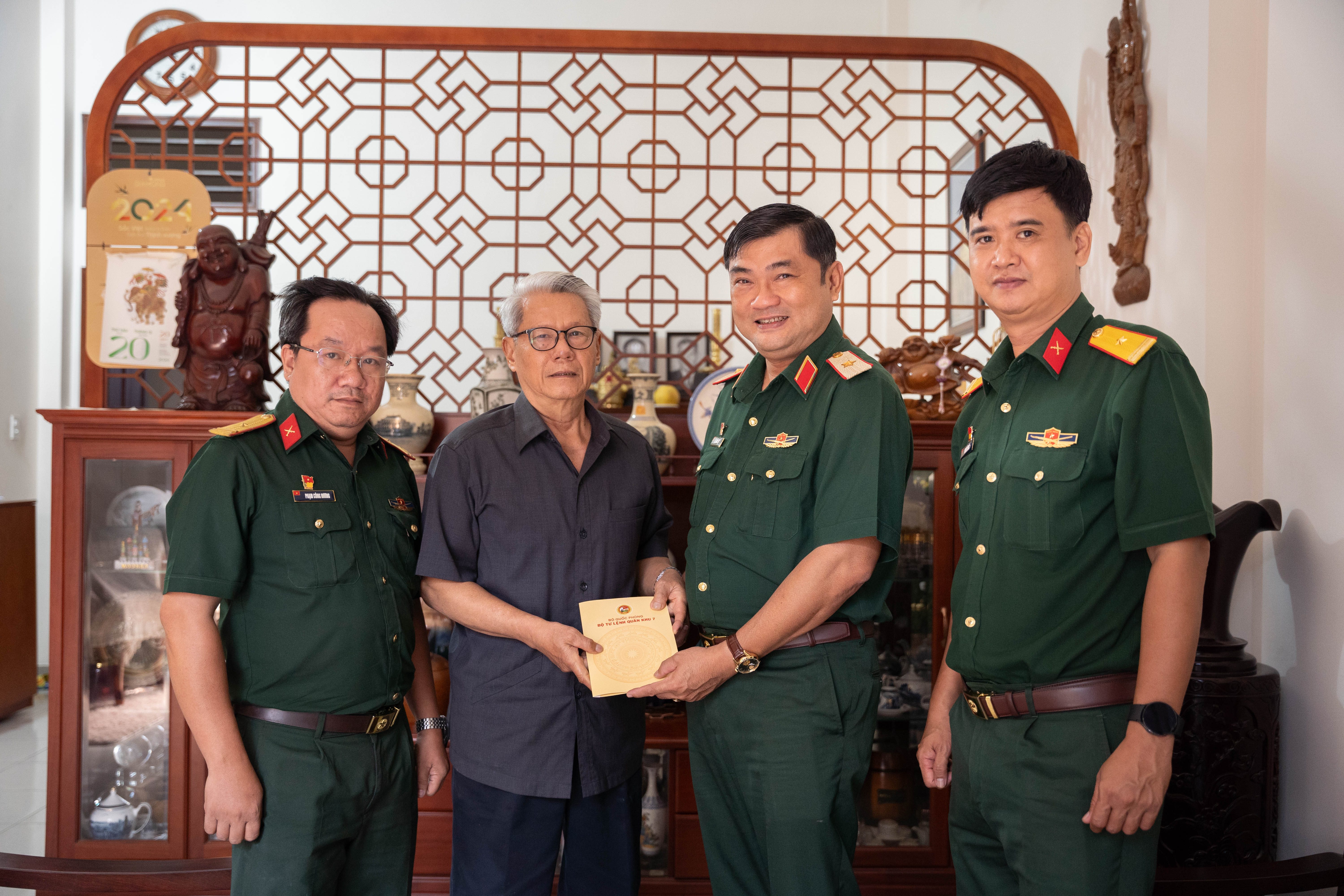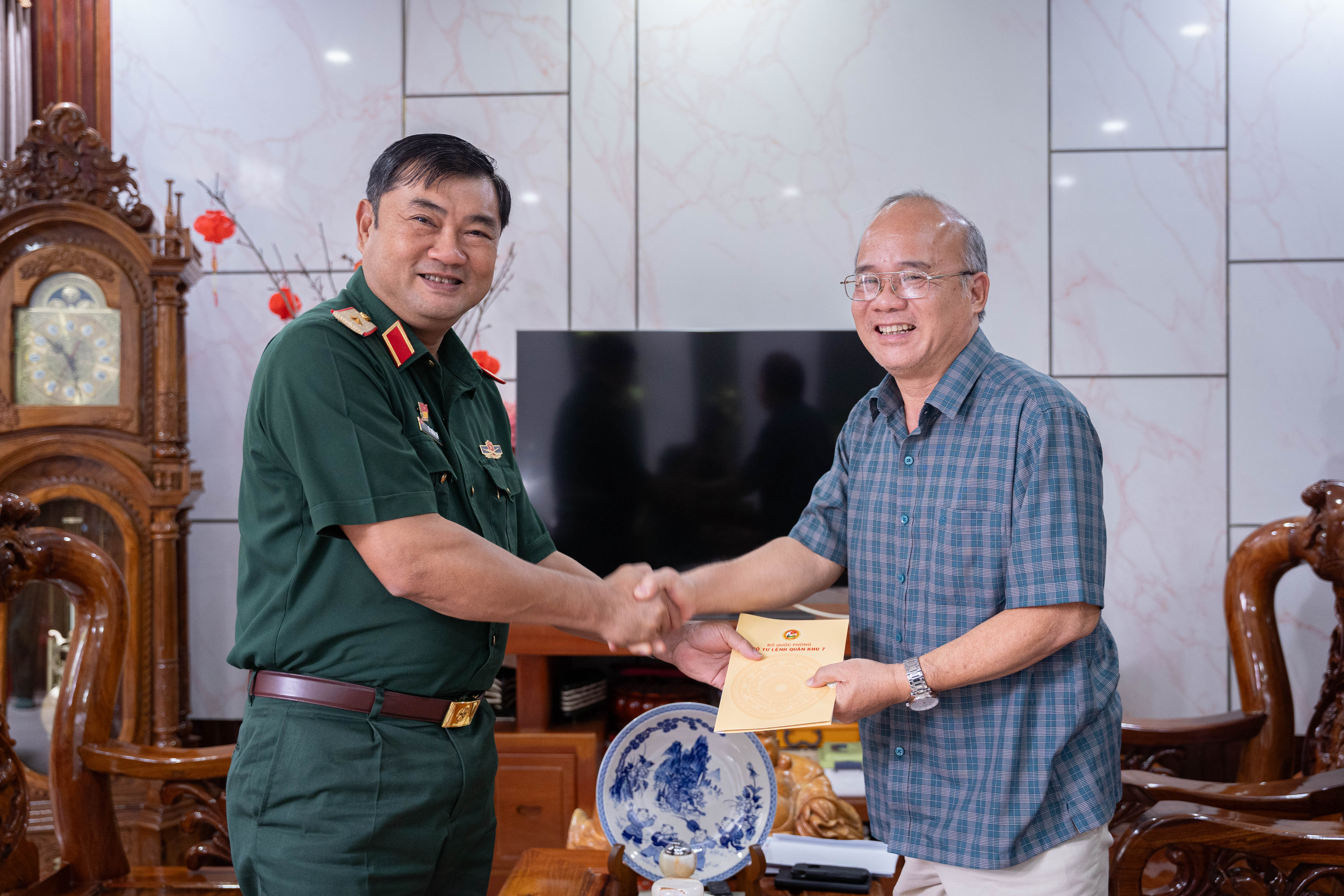 Thiếu tướng Lê Xuân Thế, Phó Tư lệnh Quân khu thăm, tặng quà Thiếu tướng Nguyễn Văn Chương, nguyên Phó Chính ủy Quân khu 7.