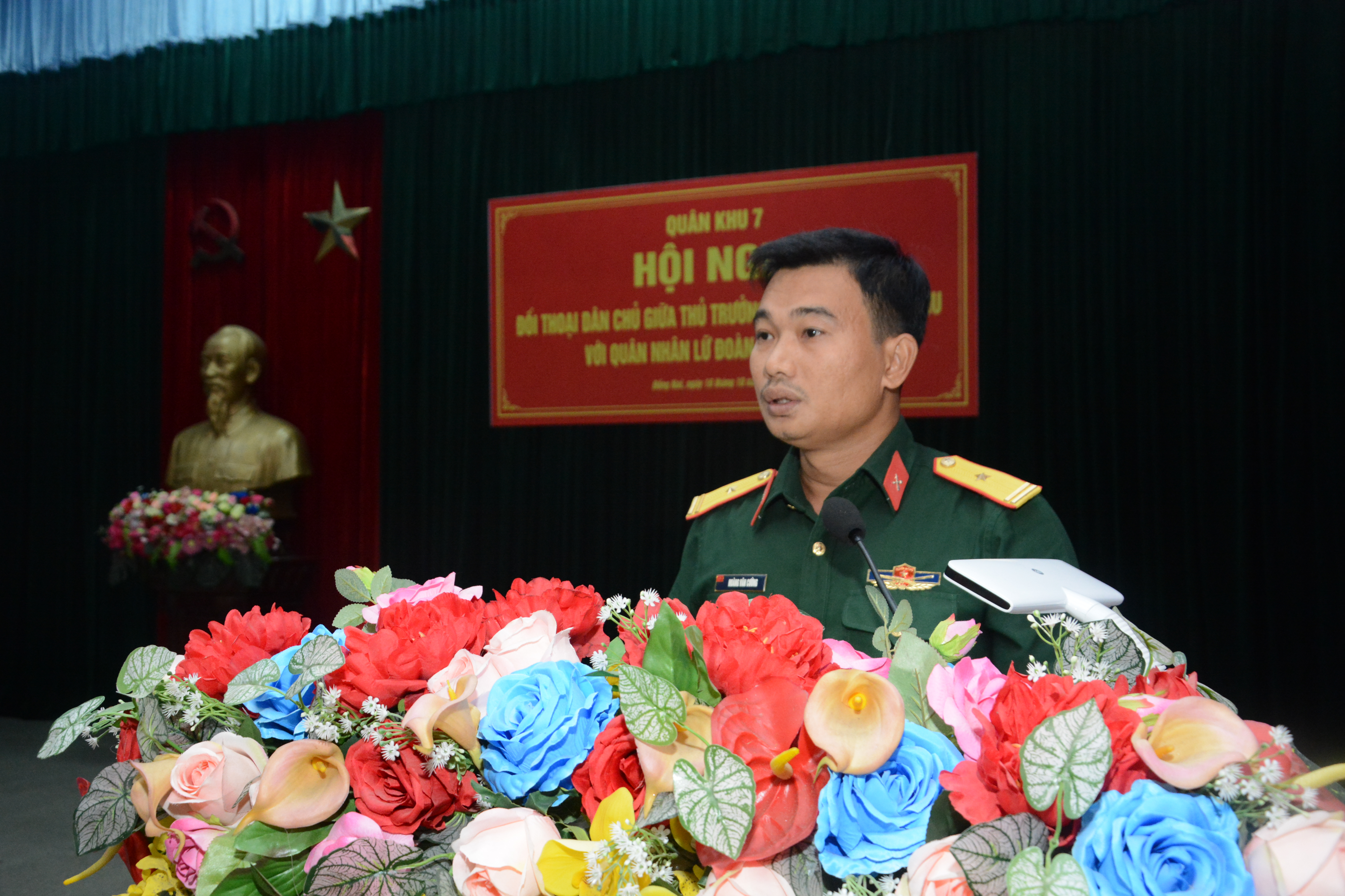 Cán bộ Lữ đoàn 75 phát biểu ý kiến tại buổi đối thoại.