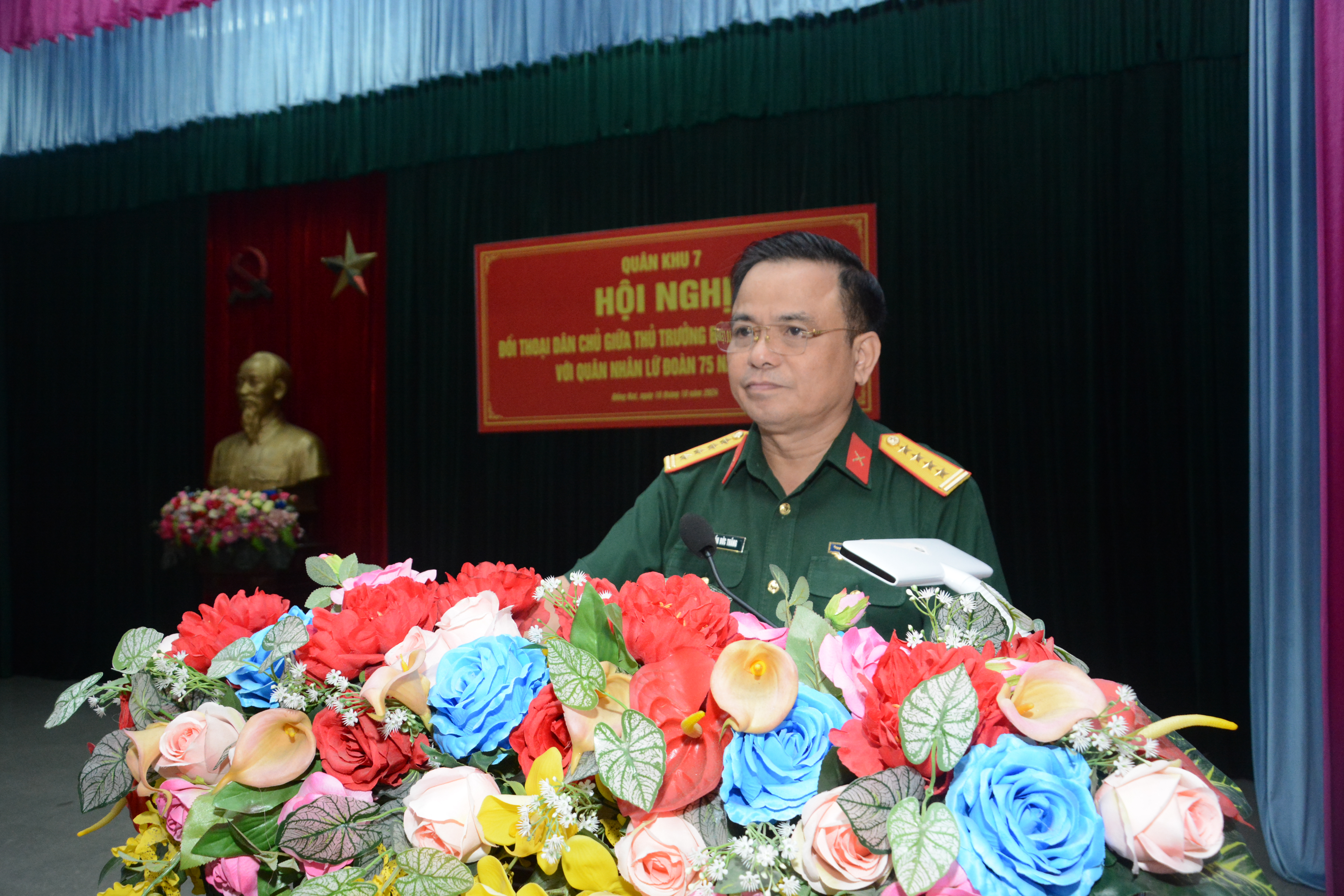 Đại tá Trần Đức Thắng, Phó Chủ nhiệm Chính trị Quân khu phát biểu kết luận buổi đối thoại.