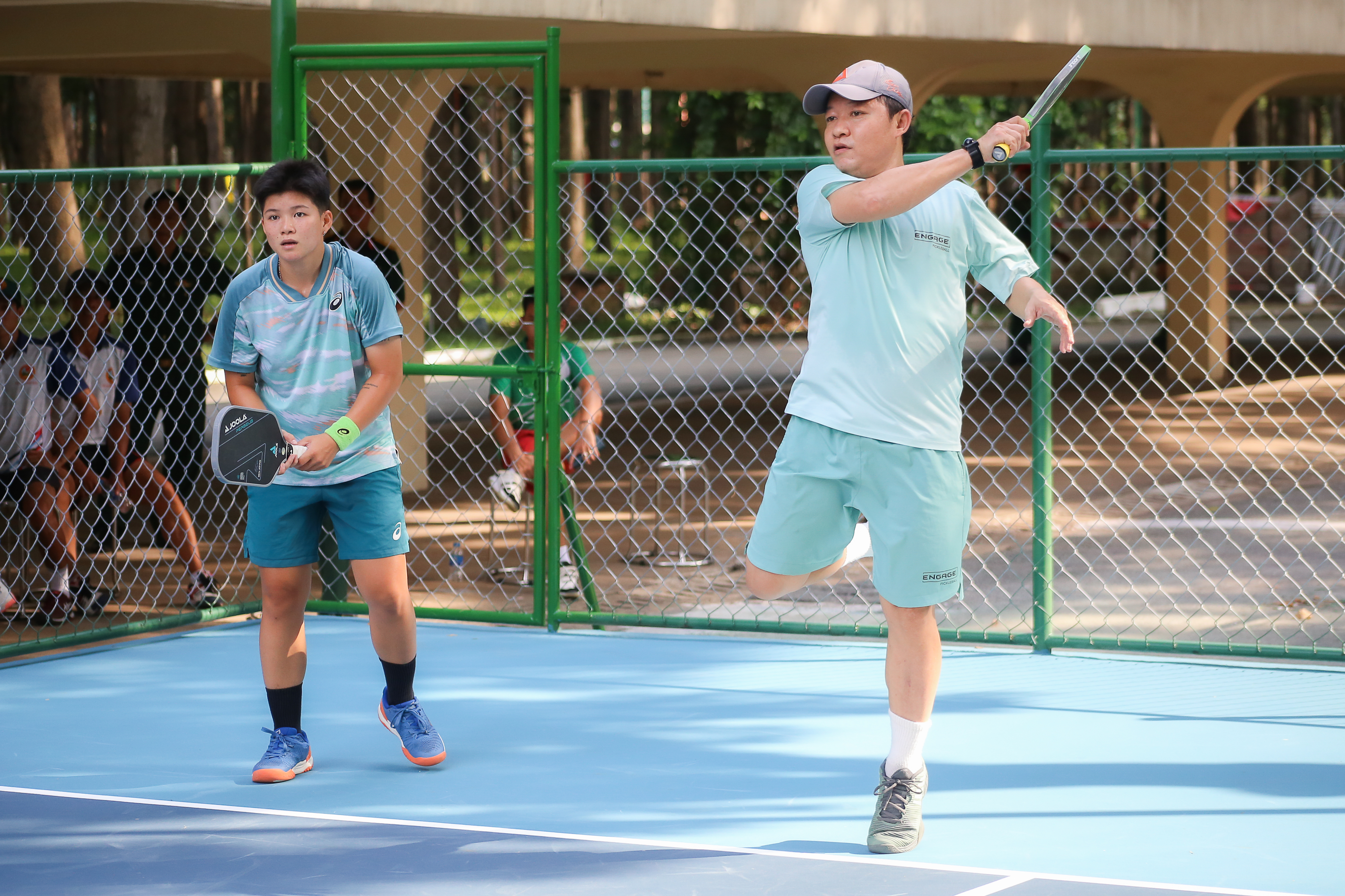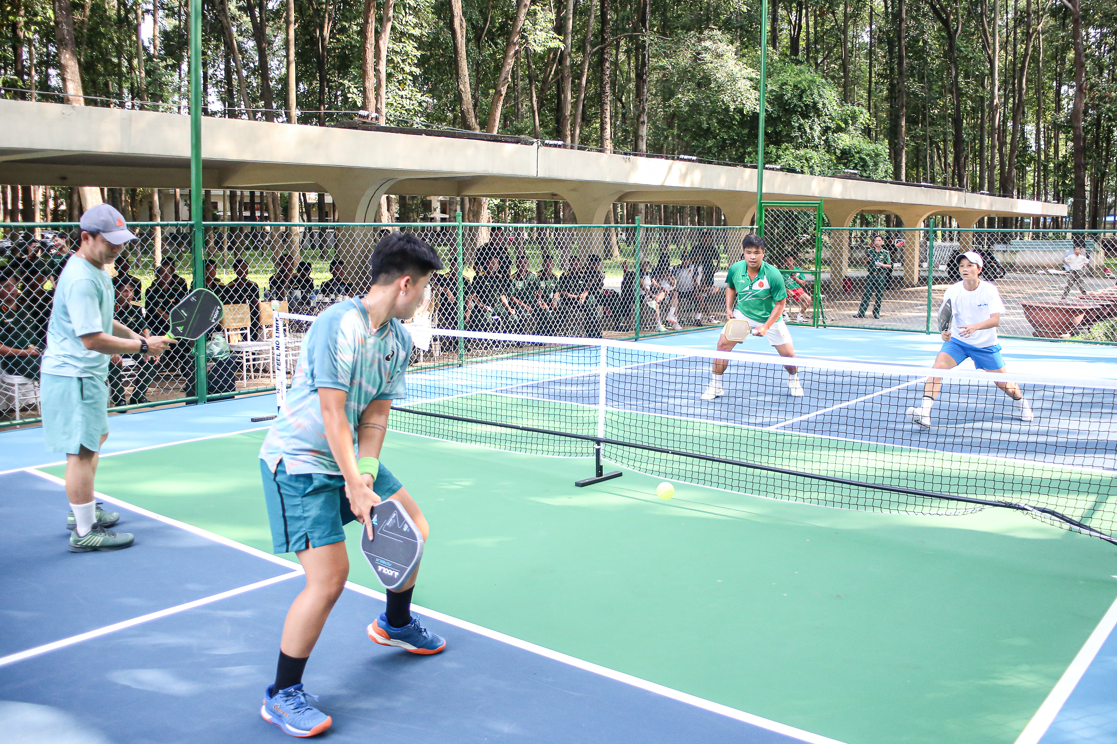 Các vận động viên thi đấu biểu diễn ngay sau lễ khánh thành sân thi đấu Pickleball.