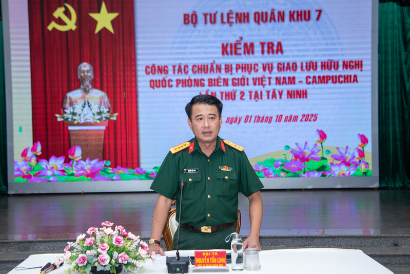 (QK7 Online) - Ngày 1 tháng 10, Đoàn công tác của Bộ Tư lệnh Quân khu 7 do Đại tá Nguyễn Tấn Linh, Phó Tư lệnh Quân khu làm trưởng đoàn đến kiểm tra công tác chuẩn bị phục vụ Giao lưu hữu nghị quốc phòng biên giới Việt Nam – Campuchia lần thứ 2 năm 2025 tại tỉnh Tây Ninh.