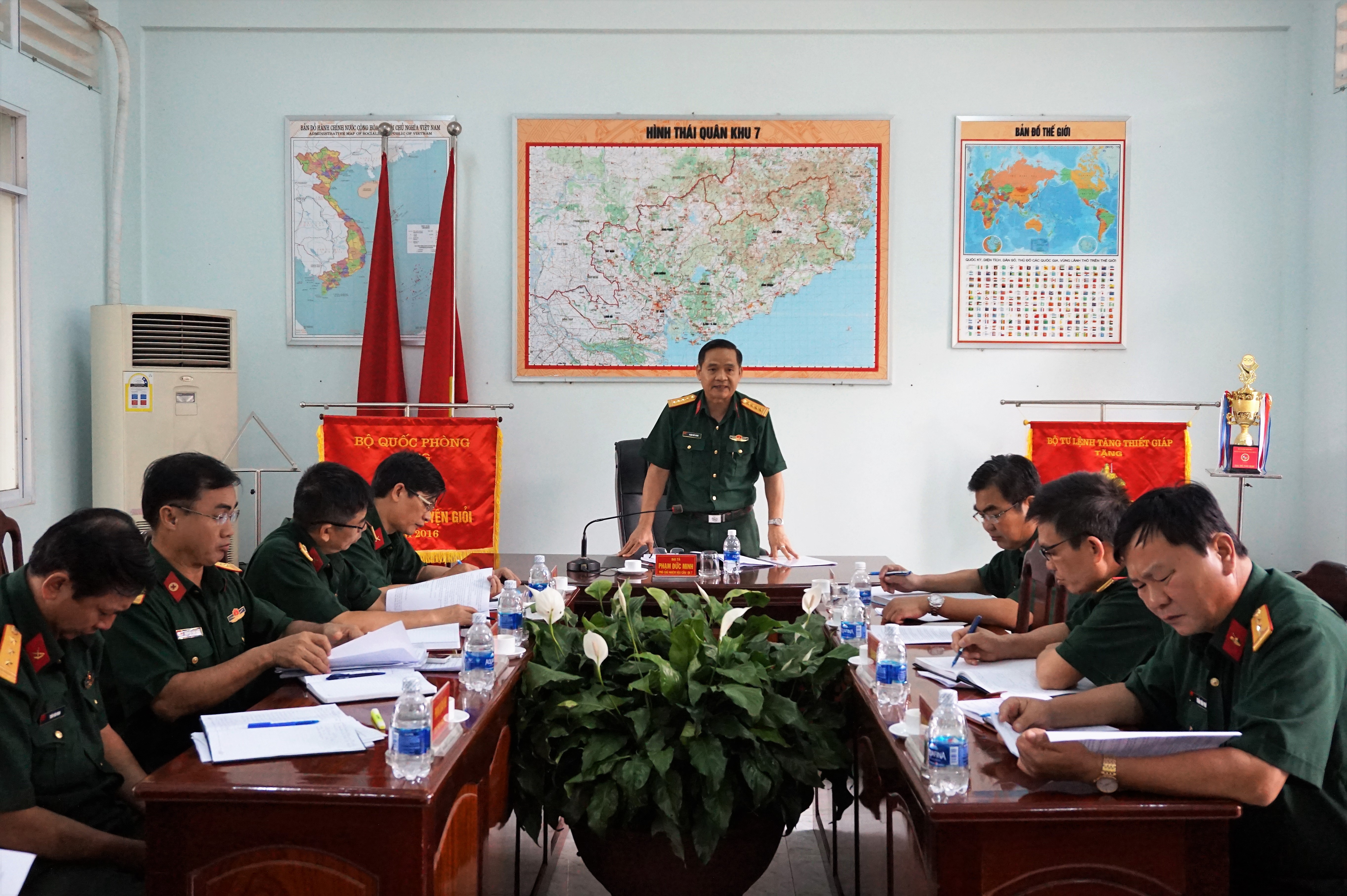 (QK7 Onlile) - Ngày 24/8, Thừa ủy quyền của Bộ Tư lệnh Quân khu 7, Đại tá Phạm Đức Minh, Phó Chủ nhiệm Hậu cần Quân khu cùng đoàn công tác đến kiểm tra kết quả thực hiện nhiệm vụ công tác hậu cần 8 tháng đầu năm 2018 của Lữ đoàn Phòng không 77 và Lữ đoàn Tăng thiết giáp 26.