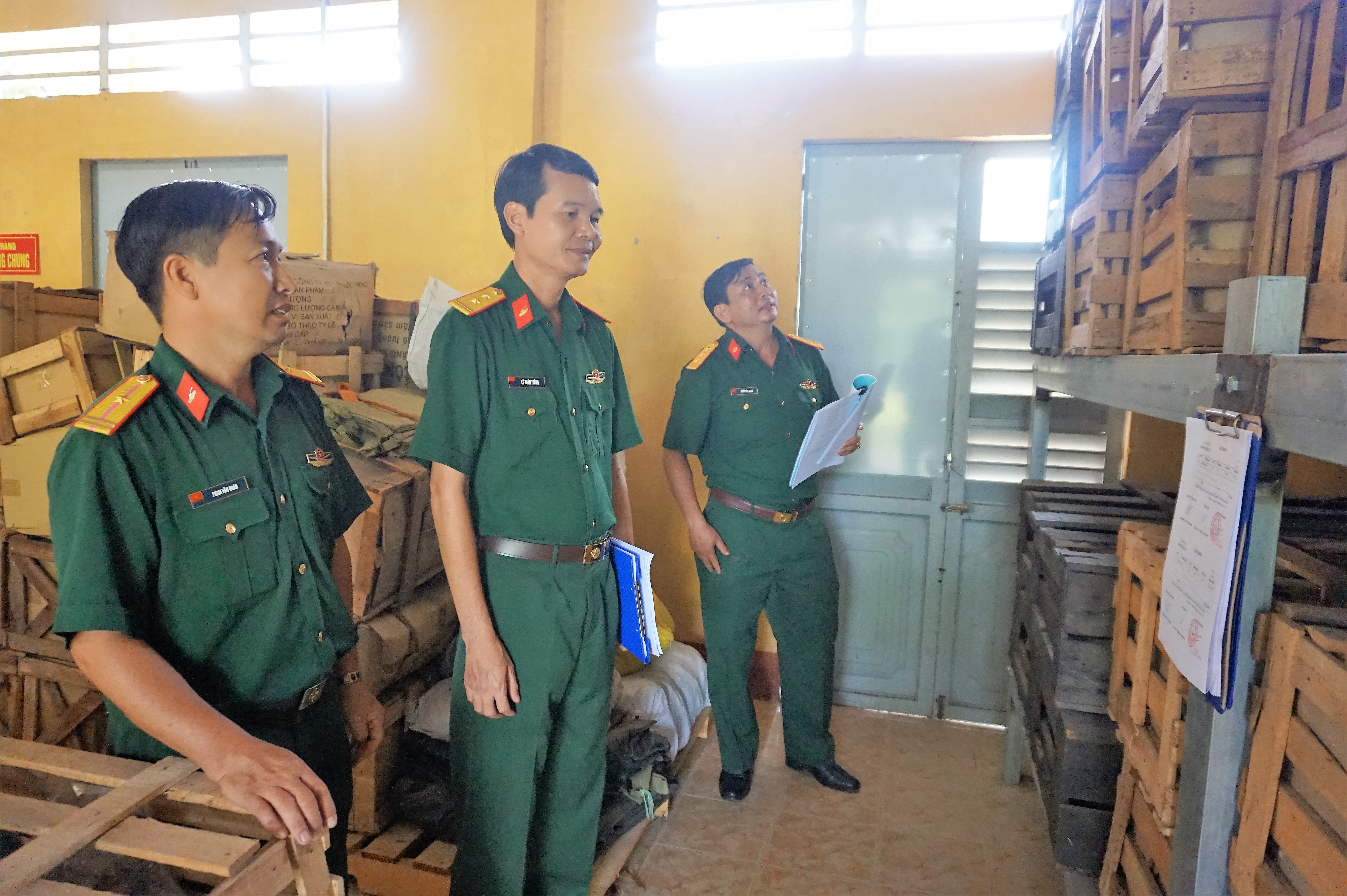 Đoàn kiểm tra kho quân trang