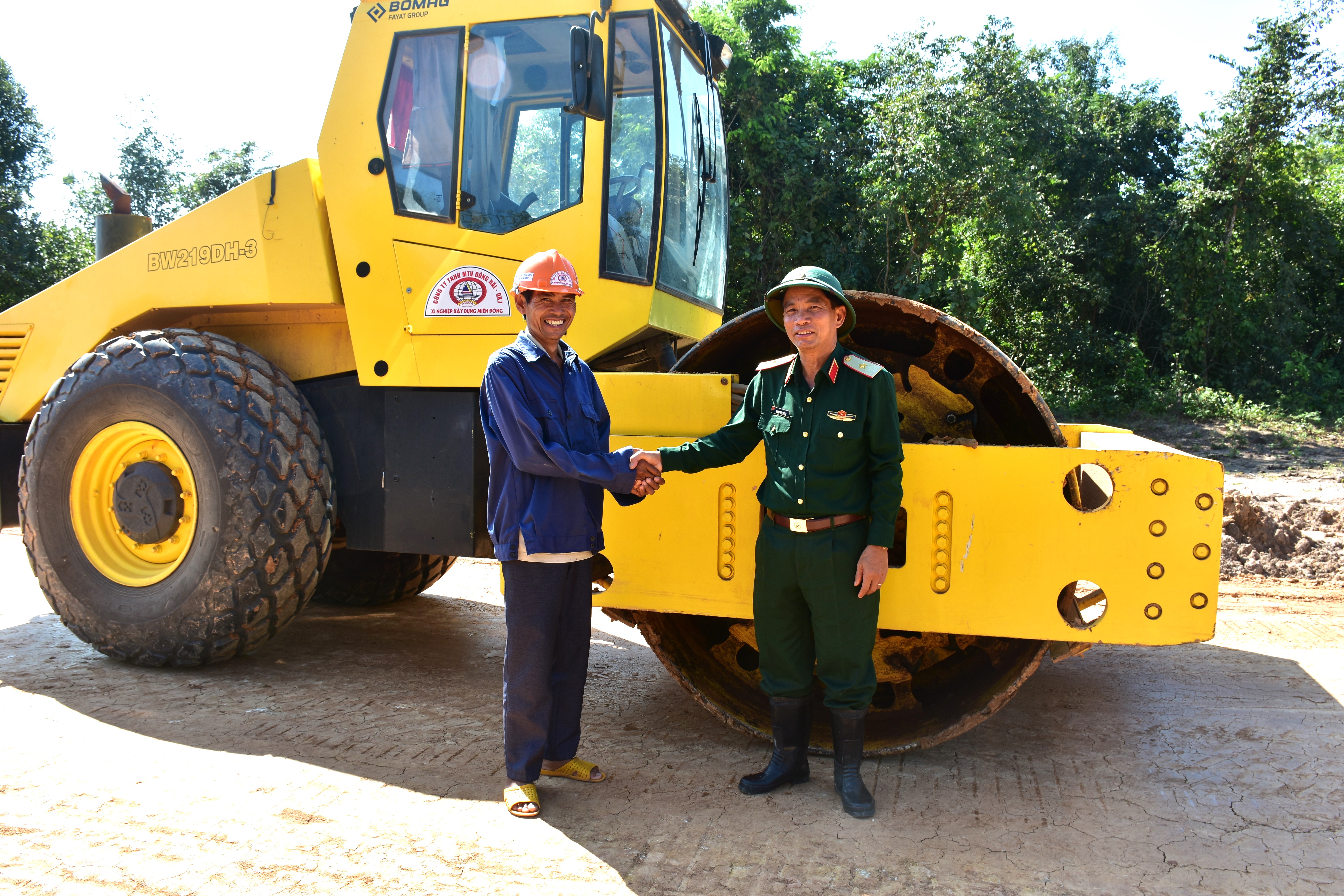 Thiếu tướng Đặng Văn Hùng, Phó Tư lệnh, Tham mưu trưởng Quân khu thăm hỏi, động viên công nhân lái máy đang thi công đường tuần tra biên bới.