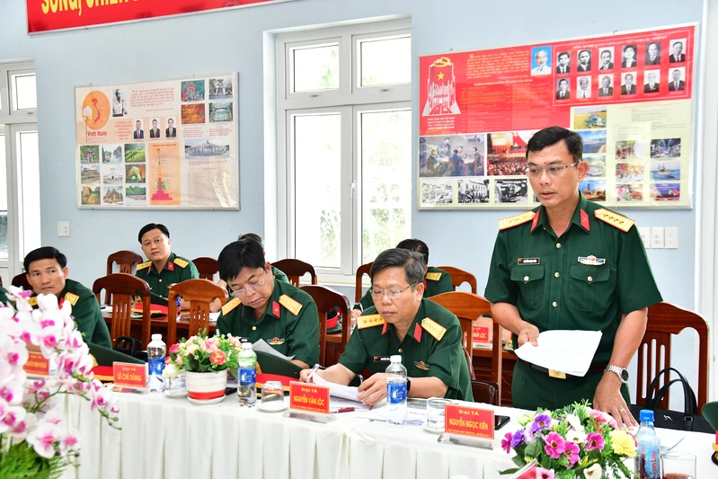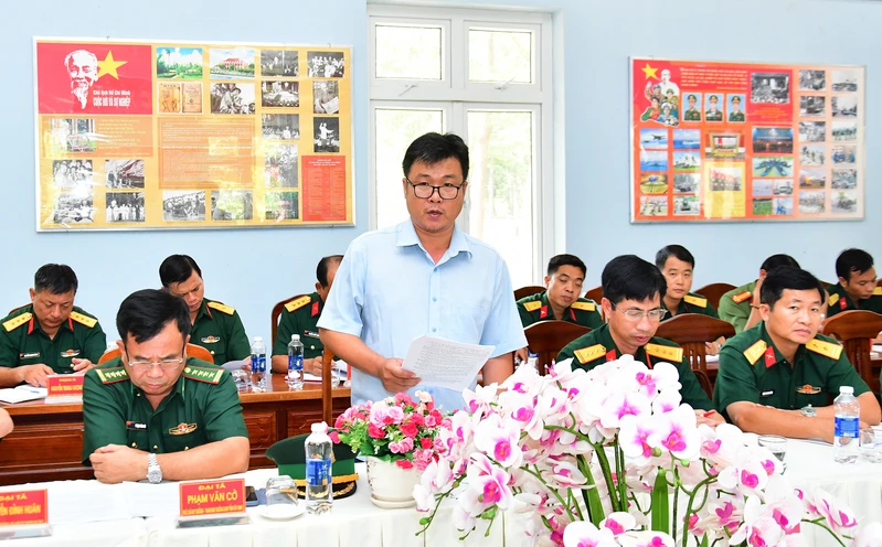 Đại tá Nguyễn Ngọc Kiên, Phó Tham mưu trưởng Quân khu phát biểu tại buổi làm việc.