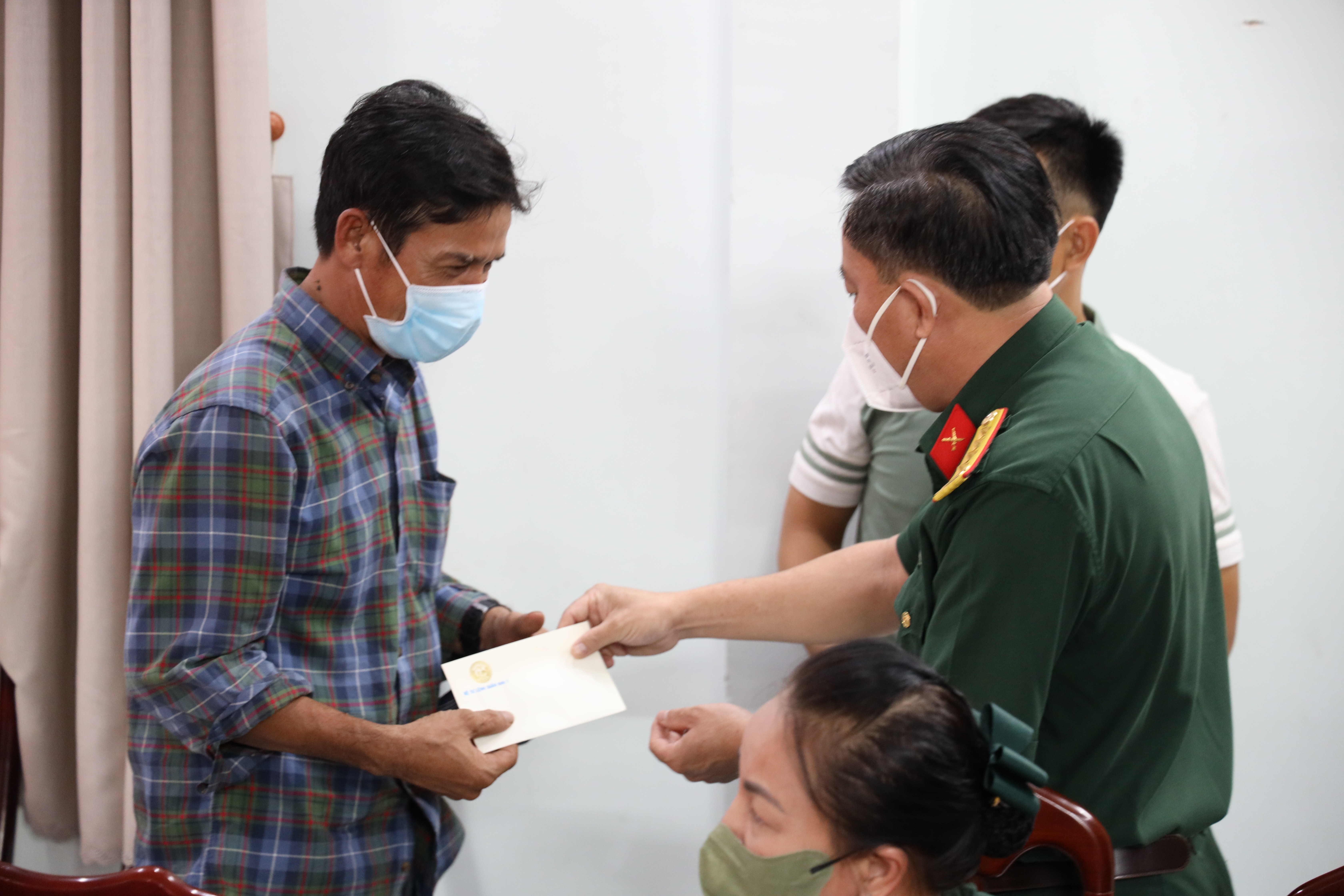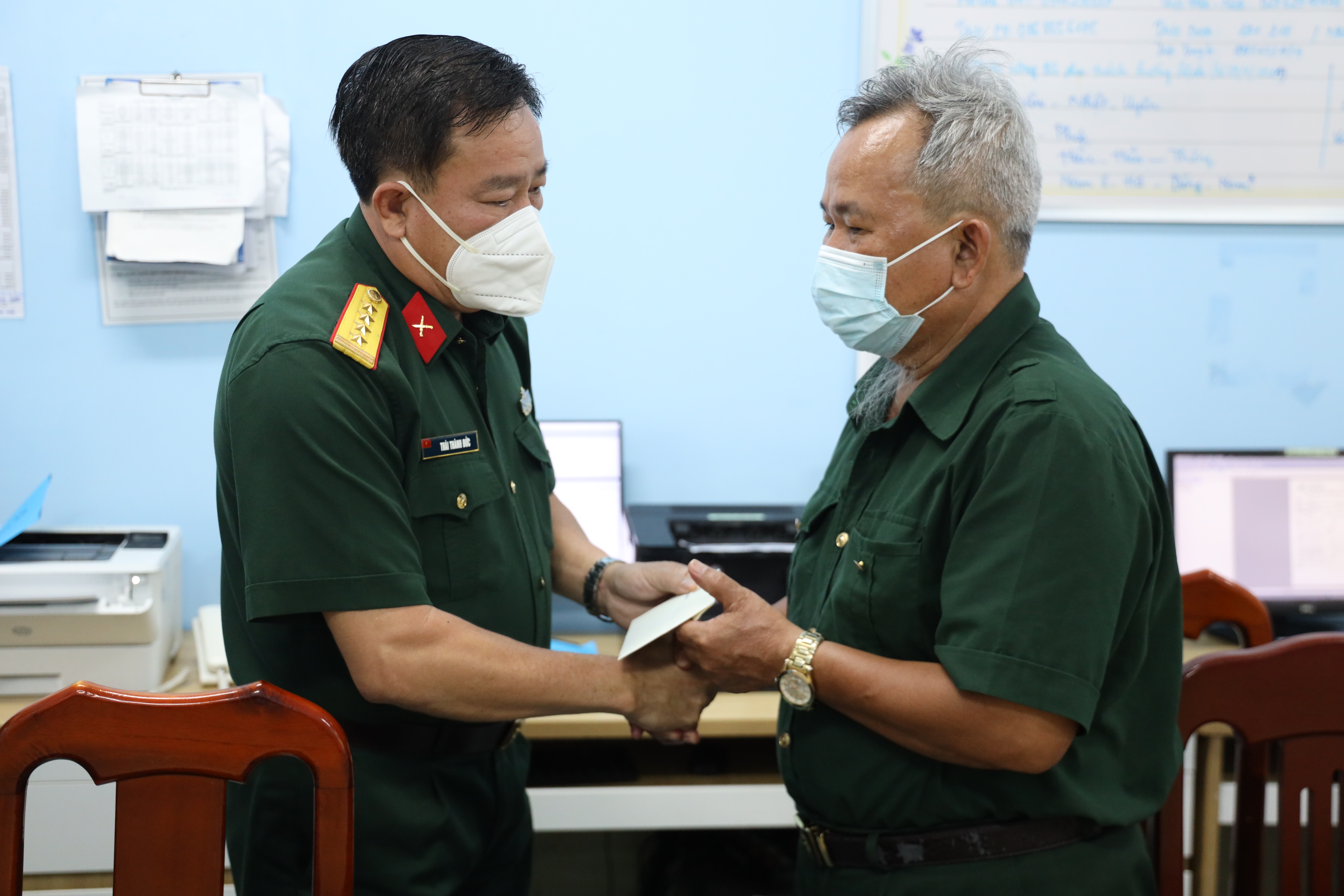 Đại tá Thái Thành Đức động viên thân nhân quân nhân đang điều trị tại Bệnh viện Quân y 175.