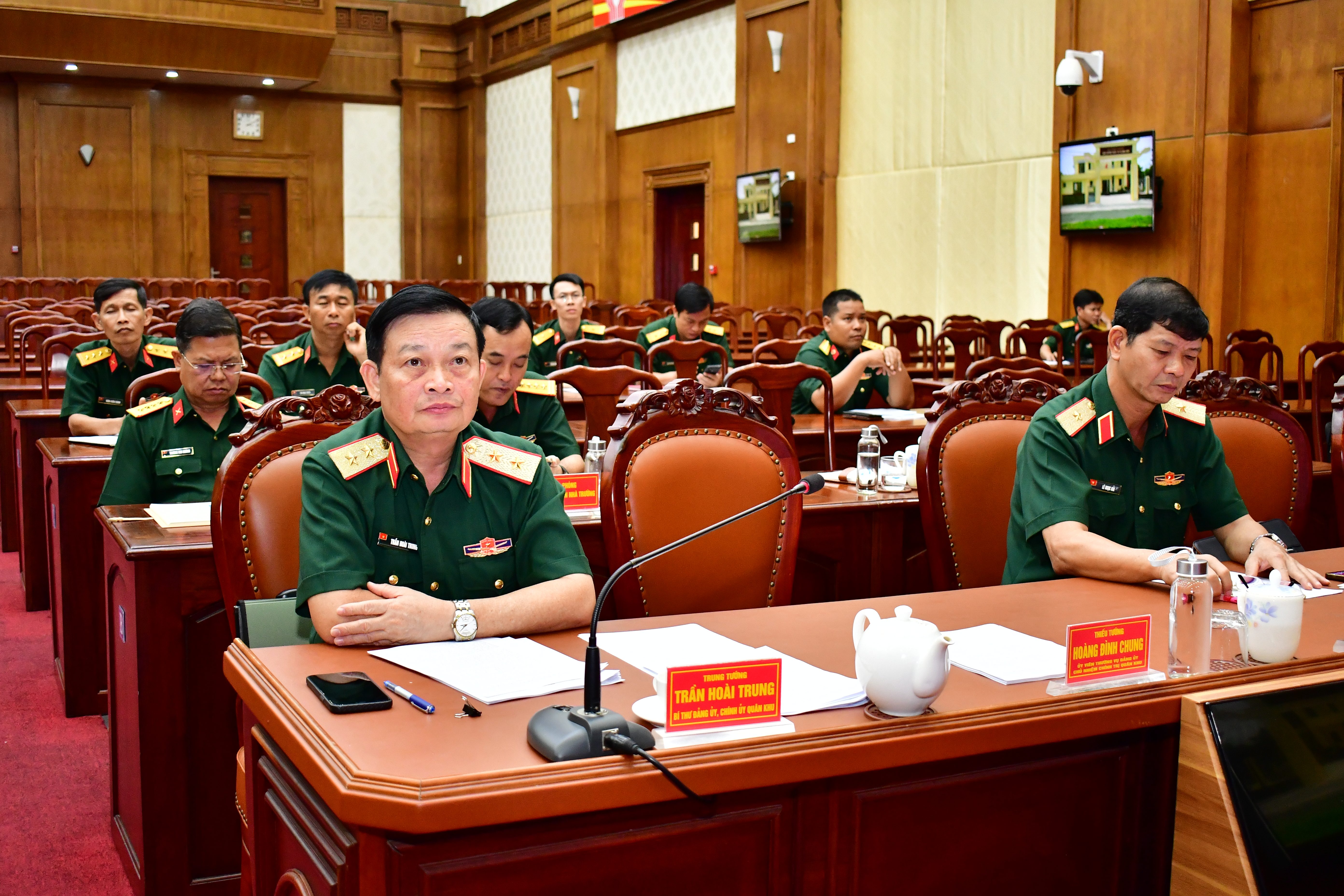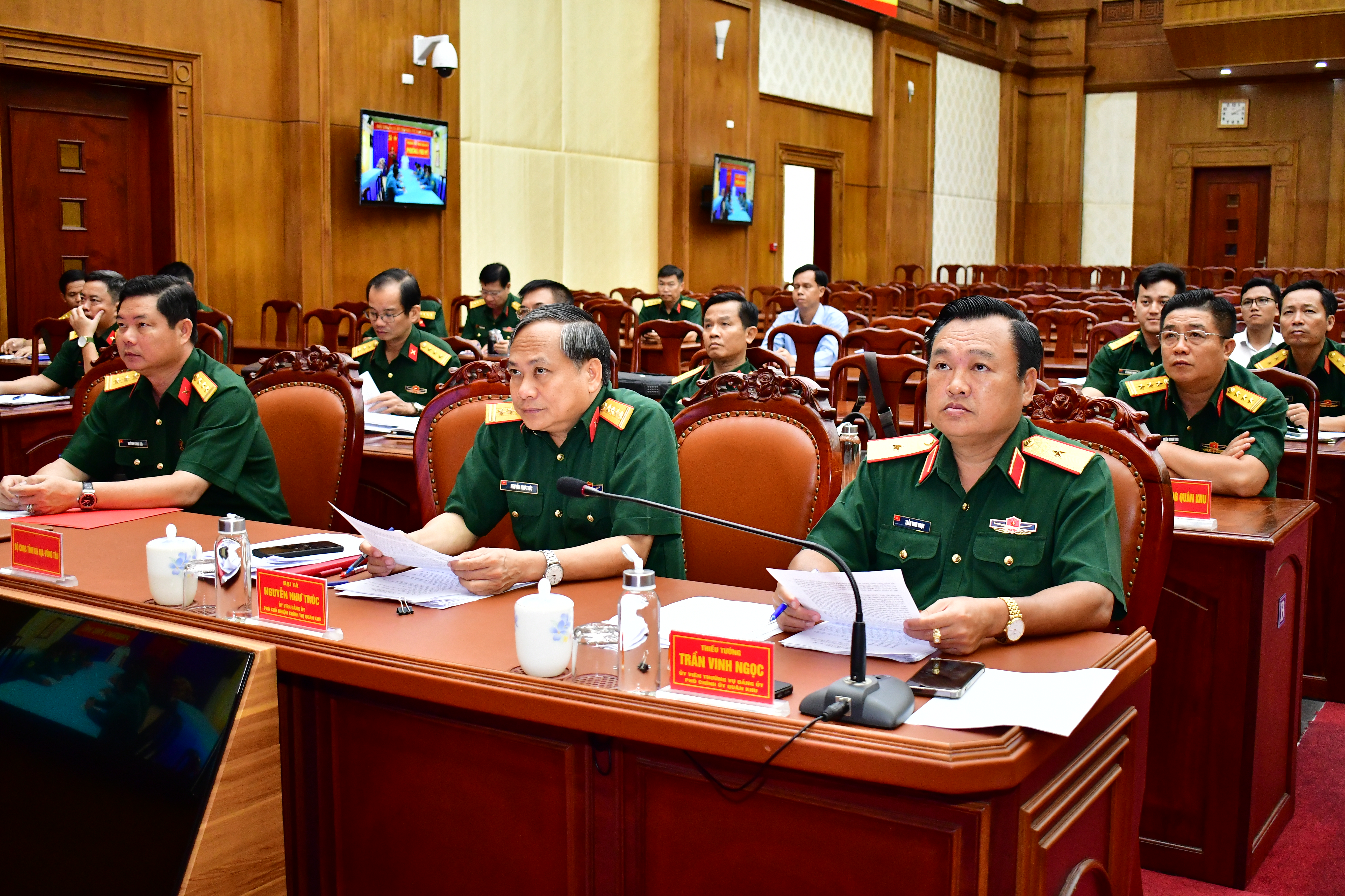 Thiếu tướng Trần Vinh Ngọc, Phó Chính ủy Quân khu và thủ trưởng Cục Chính trị Quân khu dự hội nghị.