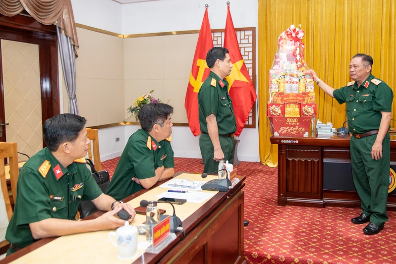 Thiếu tướng Trần Chí Tâm kiểm tra phần quà tặng cho các tập thể.