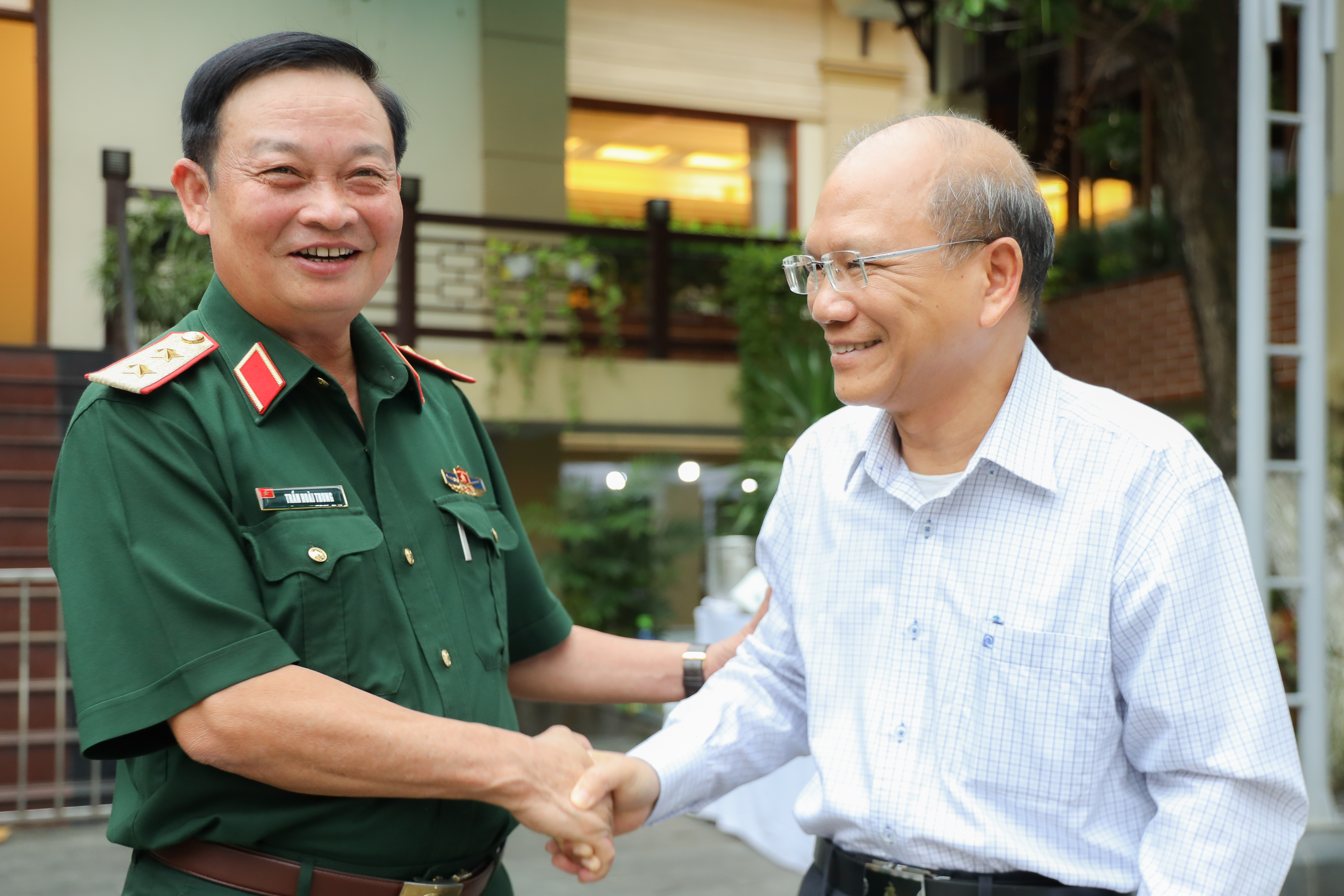 Trung tướng Trần Hoài Trung, Bí thư Đảng ủy, Chính ủy Quân khu hỏi thăm đại biểu.