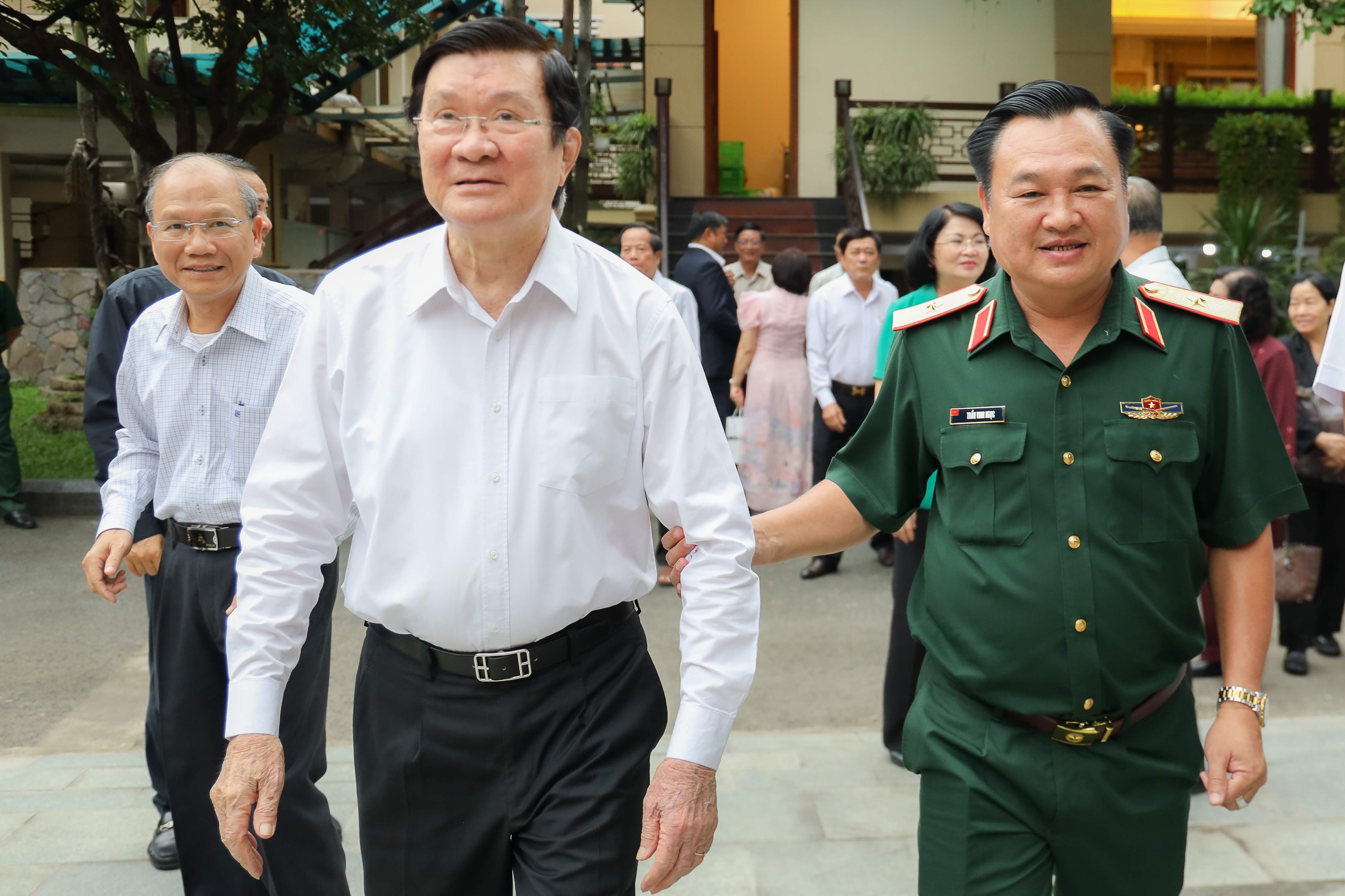 Thiếu tướng Trần Vinh Ngọc, Phó Chính ủy Quân khu và đồng chí Trương Tấn Sang, nguyên Chủ tịch nước.
