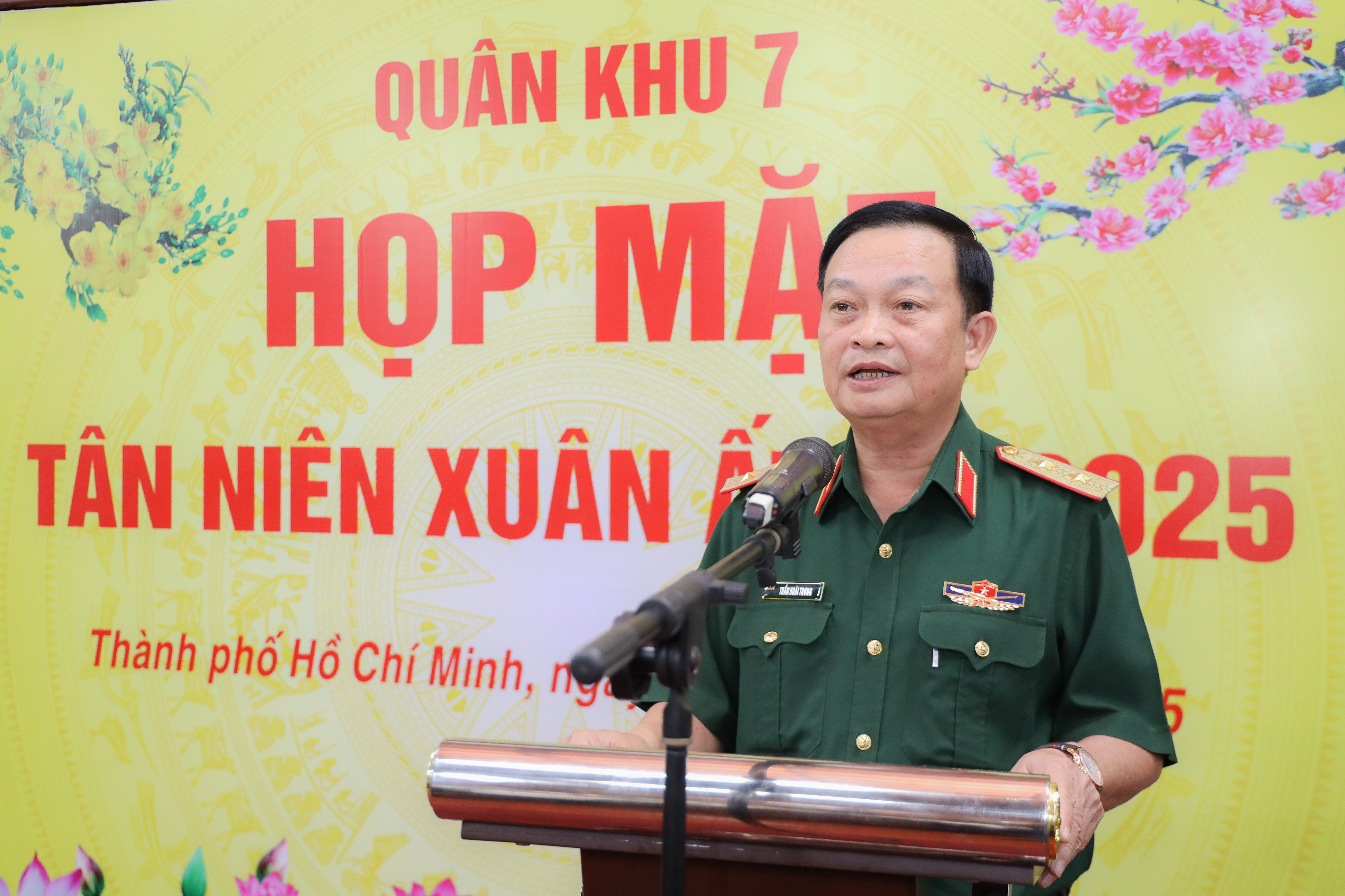 Phát biểu họp mặt, Trung tướng Trần Hoài Trung, Bí thư Đảng ủy, Chính ủy Quân khu cho biết, trong năm 2024 LLVT Quân khu đã đoàn kết, phấn đấu, vượt mọi khó khăn, hoàn thành toàn diện nhiệm vụ quân sự, quốc phòng, LLVT Quân khu luôn nắm chắc tình hình, tham mưu với Đảng, Nhà nước, Quân ủy Trung ương, Bộ Quốc phòng và phối hợp chặt chẽ với các lực lượng xử lý kịp thời các tình huống không để bị động, bất ngờ. Quân khu tiếp tục có sự chuyển biến tích cực vượt bậc trong xây dựng tiềm lực, lực lượng và thế trận quốc phòng. Dân tin Đảng, đồng thuận với chính quyền, thương yêu bộ đội, hăng hái thực hiện tốt nghĩa vụ xây dựng và bảo vệ Tổ quốc. Sức mạnh tổng hợp được phát huy cao độ, các nguồn lực được huy động tối đa. Nhiều chủ trương mới, có tính chiến lược và ý nghĩa chính trị - xã hội sâu sắc, được cấp ủy, chính quyền, Nhân dân địa phương ủng hộ, tiếp tục được triển khai sâu rộng, hiệu quả, là điểm sáng của toàn quân, toàn quốc.