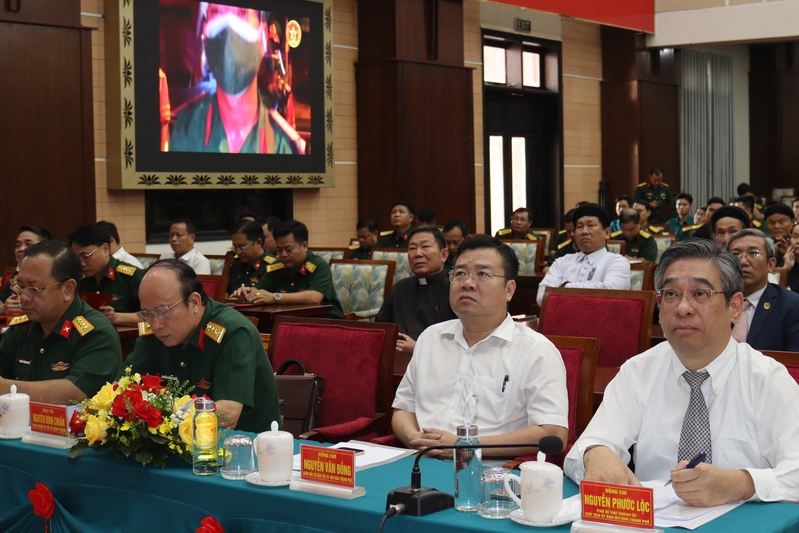Đồng chí Nguyễn Phước Lộc, Phó Bí thư Thành ủy TPHCM, Chủ tịch UBMTTQVN TPHCM; đồng chí Nguyễn Văn Đồng, giám đốc Sở Dân tộc và tôn giáo Thành phố (từ phải sang trái) và thủ trưởng Bộ Tư lệnh Thành phố dự hội nghị.