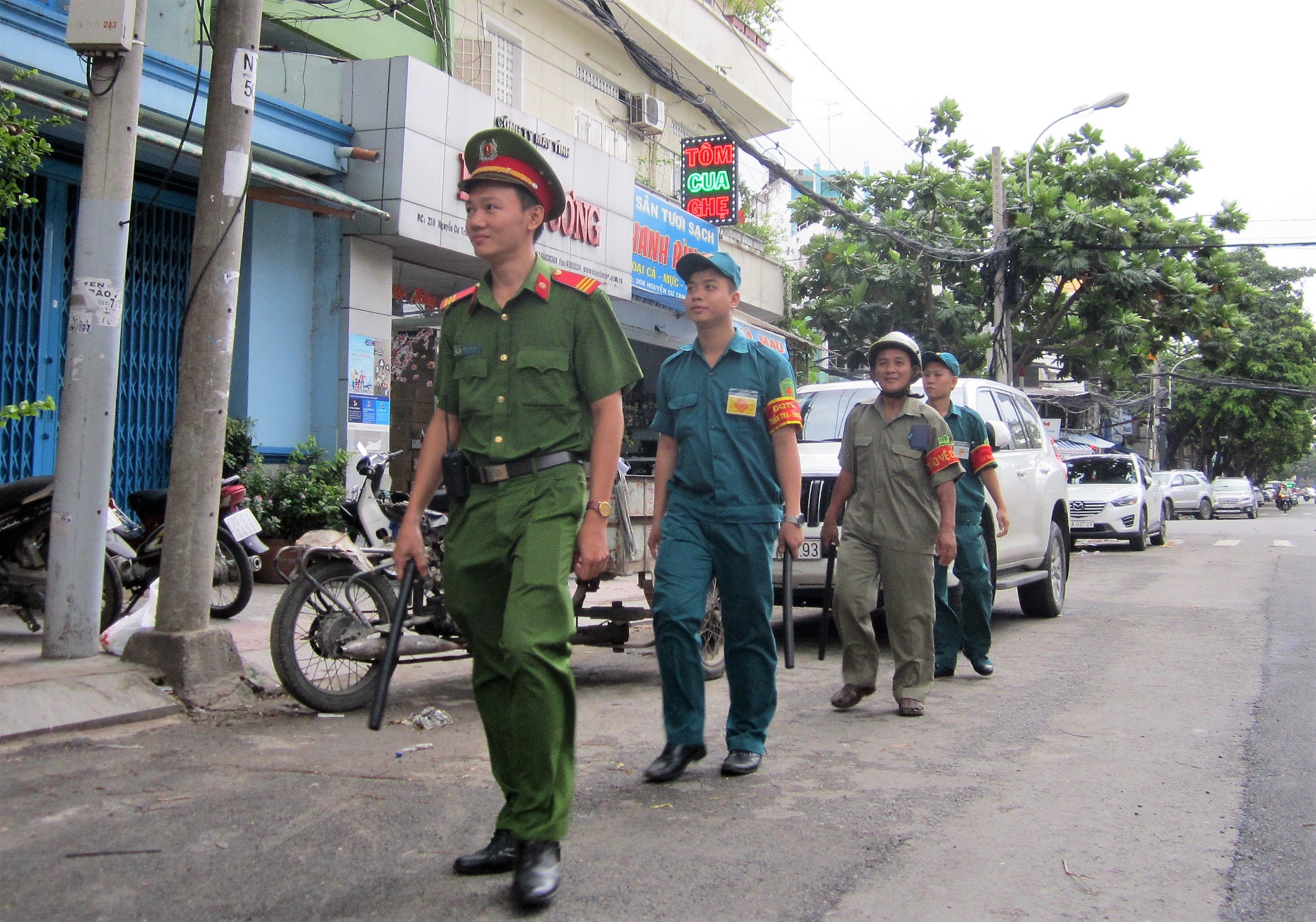 Dân quân thành phố phối hợp tuần tra canh gác địa bàn.