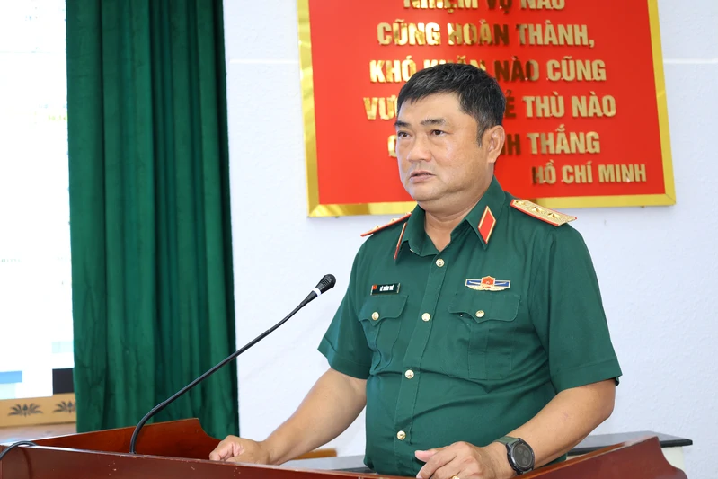 Thiếu tướng Nguyễn Thành Trung, Thành ủy viên, Phó Bí thư Thường trực Đảng ủy Quân sự, Chính ủy Bộ Tư lệnh Thành phố Hồ Chí Minh phát biểu khai mạc Hội thảo.
