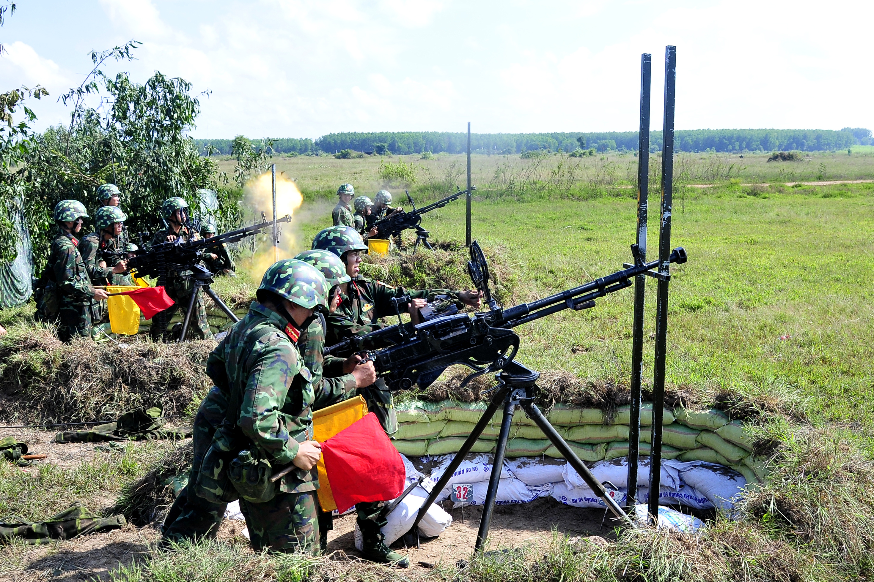 Khẩu đội súng máy phòng không 12,7mm bảo vệ đội hình tiến công.