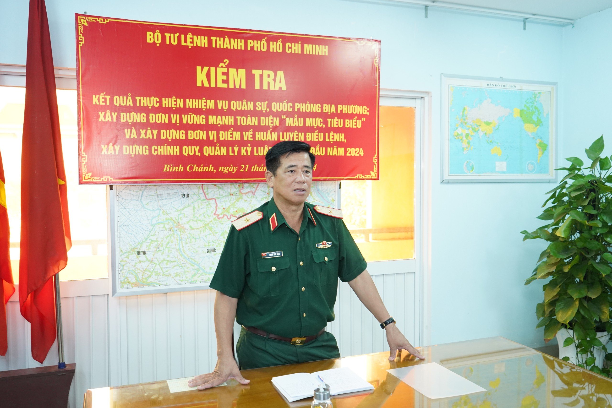 Đoàn công tác kiểm tra thực hiện nhiệm vụ tại Ban CHQS xã Bình Lợi, huyện Bình Chánh.