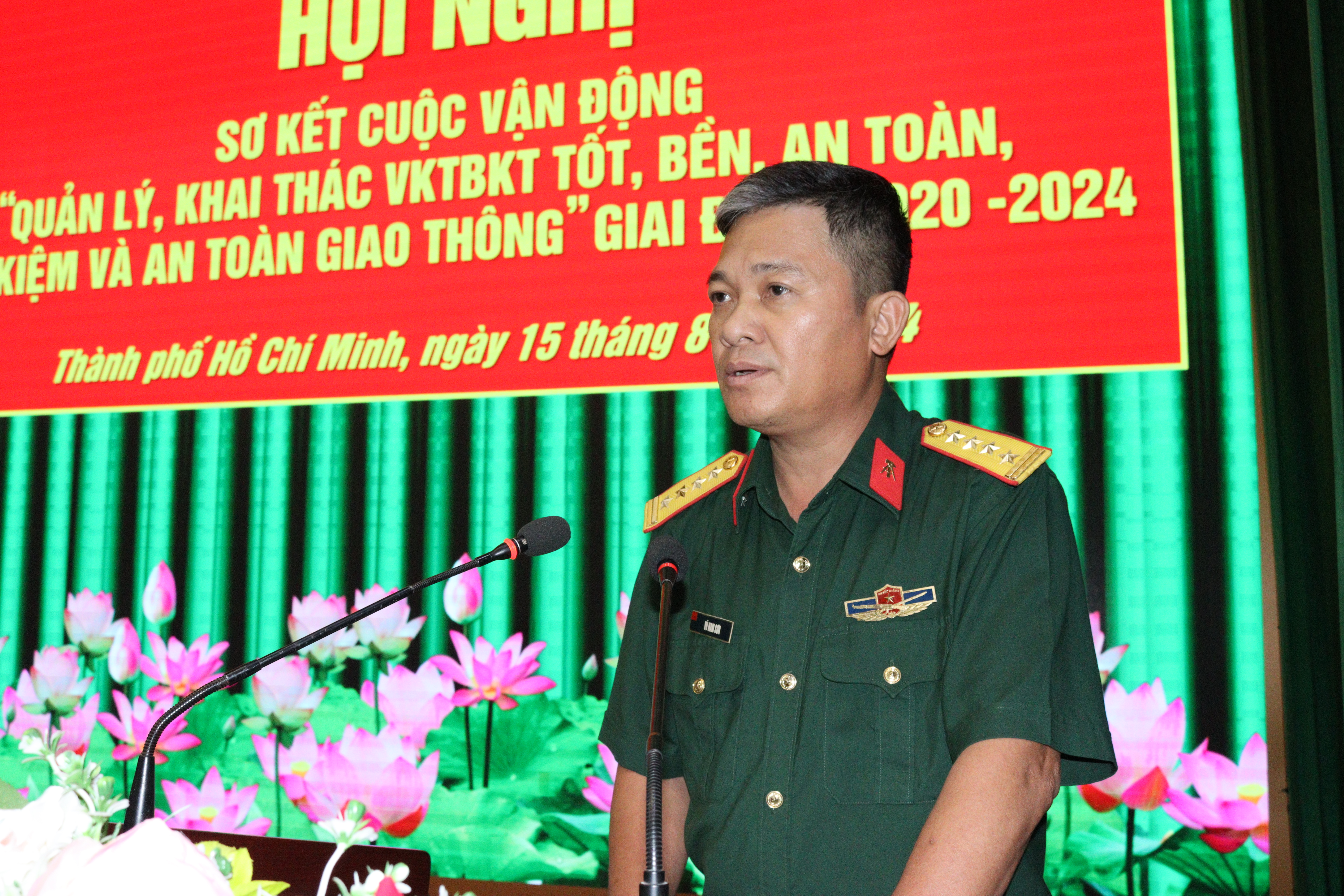 (QK7 Online) – Sáng 15/8, Bộ Tư lệnh TPHCM tổ chức hội nghị sơ kết thực hiện Cuộc vận động “Quản lý, khai thác vũ khí trang bị kỹ thuật (VKTBKT) tốt, bền, an toàn, tiết kiệm và an toàn giao thông” (CVĐ50) giai đoạn 2020 – 2024. Thiếu tướng Phạm Văn Rậm, Phó Tư lệnh Bộ Tư lệnh TPHCM chủ trì hội nghị. Đại tá Vũ Nam Sơn, Phó Chủ nhiệm Kỹ thuật Quân khu dự hội nghị.