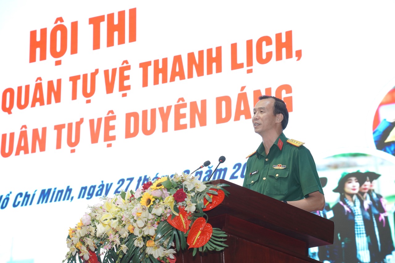Đại tá Phạm Như Quân, Phó Chính ủy Bộ Tư lệnh TPHCM phát biểu khai mạc Hội thi.