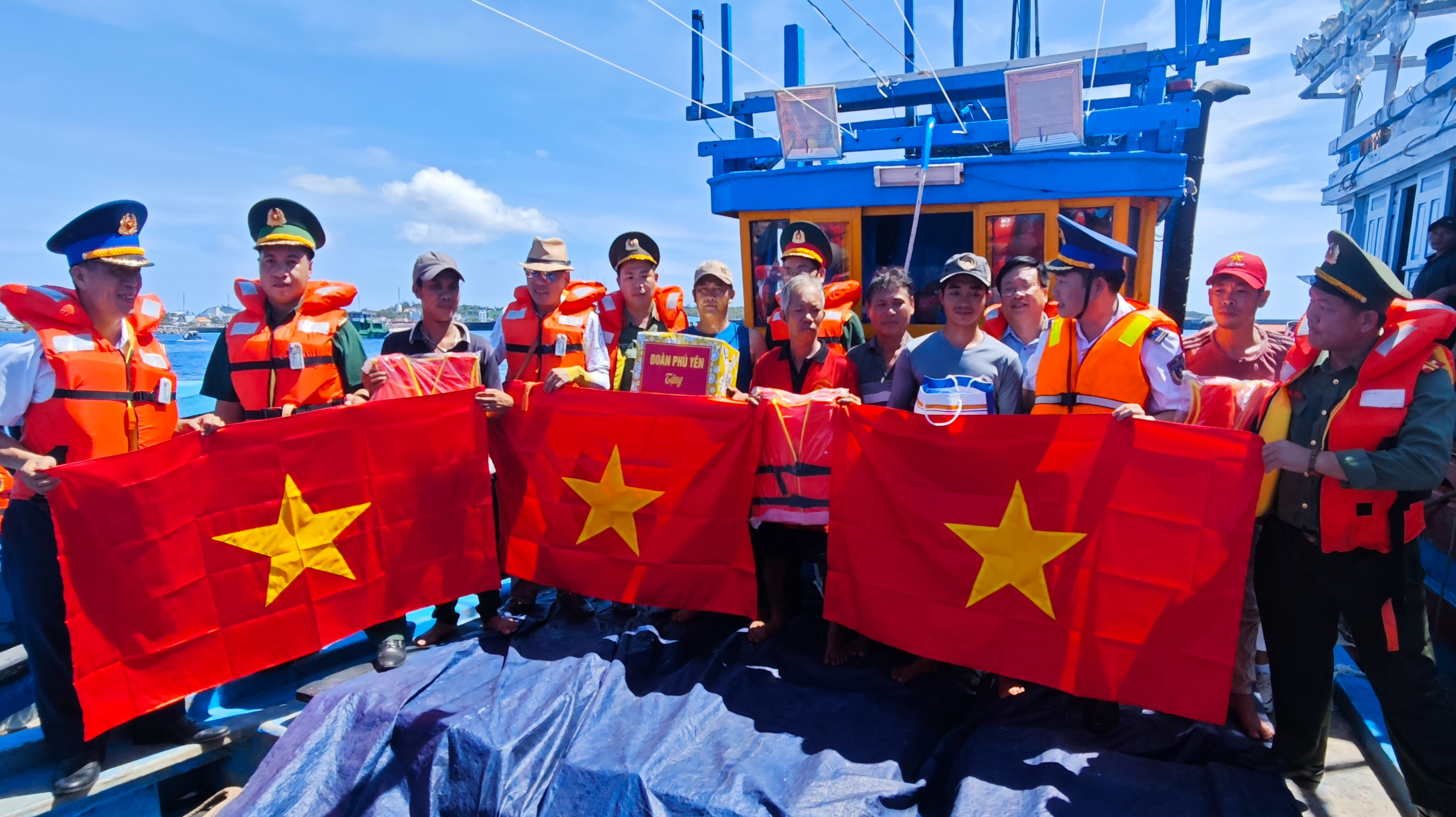 Bên cạnh hoạt động tuyên truyền, đoàn đã trao tặng 10 phần quà gồm các nhu yếu phẩm, áo phao và cờ Tổ quốc cho các hộ gia đình ngư dân đang hoạt động đánh bắt tại ngư trường truyền thống quanh đảo. Những món quà tuy nhỏ nhưng mang ý nghĩa tinh thần lớn, góp phần tiếp thêm động lực để bà con yên tâm vươn khơi, bám biển.