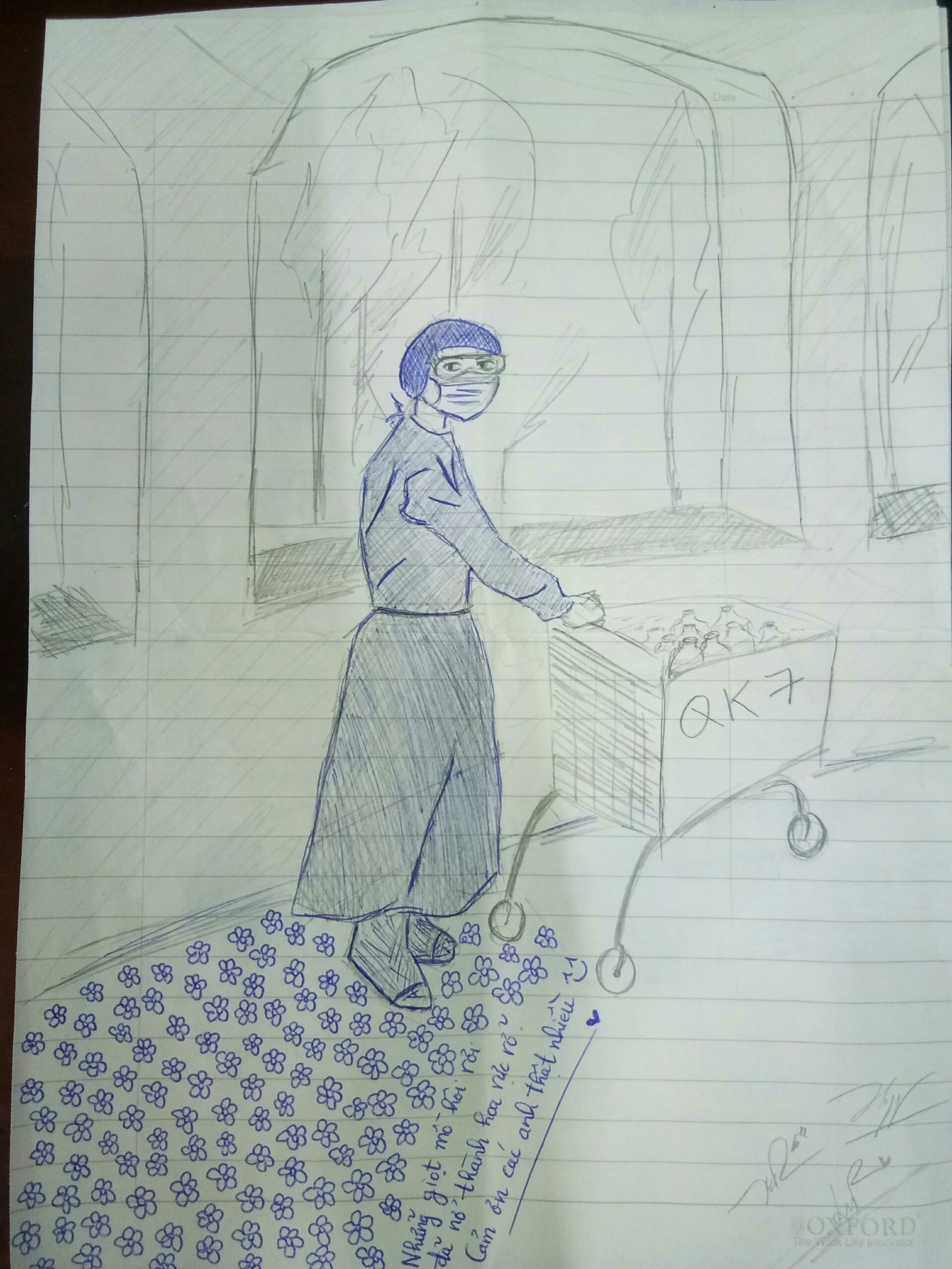 Cháu là một du học sinh đang theo học ngành Y ở nước ngoài với tâm huyết sau khi hoàn thành việc học sẽ về phục vụ cho Tổ quốc thân thương của mình. Nhưng việc học chưa thành, đại dịch Covid-19 ập đến, lây lan khắp toàn cầu. Ở nơi đất khách quê người, cháu mất một tháng để quyết định tiếp tục ở lại học hay về nước với gia đình. Qua thông tin báo, đài thế giới, cháu biết được hiện nay Việt Nam là nơi khống chế dịch bệnh tốt nhất, thực hiện cách ly và chữa bệnh ưu việt nhất. Điều này làm cháu rất yên tâm và quyết định trở về nước vào ngày 17/3/2020. Cháu rất day dứt vì đã gây thêm gánh nặng tài chính cho nước mình, vì các cô chú sẽ phải chăm lo cơm nước cho cháu suốt nửa tháng cách ly. Cháu cảm thấy có lỗi vì điều này. Nhưng các cô chú biết không, cháu không nói quá đâu, 14 ngày ở khu cách ly Trường Quân sự Quân khu 7 là 14 ngày vui vẻ và nhẹ nhõm nhất của cháu suốt vài tháng nay. Cháu không chỉ được về quê hương, về nhà, được nghe và nói chuyện bằng tiếng mẹ đẻ, mà cháu cũng không cần phải căng thẳng một mình ở nơi quê người chống chọi với bệnh dịch. Các cô chú ở nhà trường tốt lắm, các anh quân nhân và các bác sĩ, y tá lúc nào cũng vui vẻ lạc quan, chính sự lạc quan và niềm nở của các cô chú, anh chị giúp cháu thoải mái, an tâm hơn nhiều.
