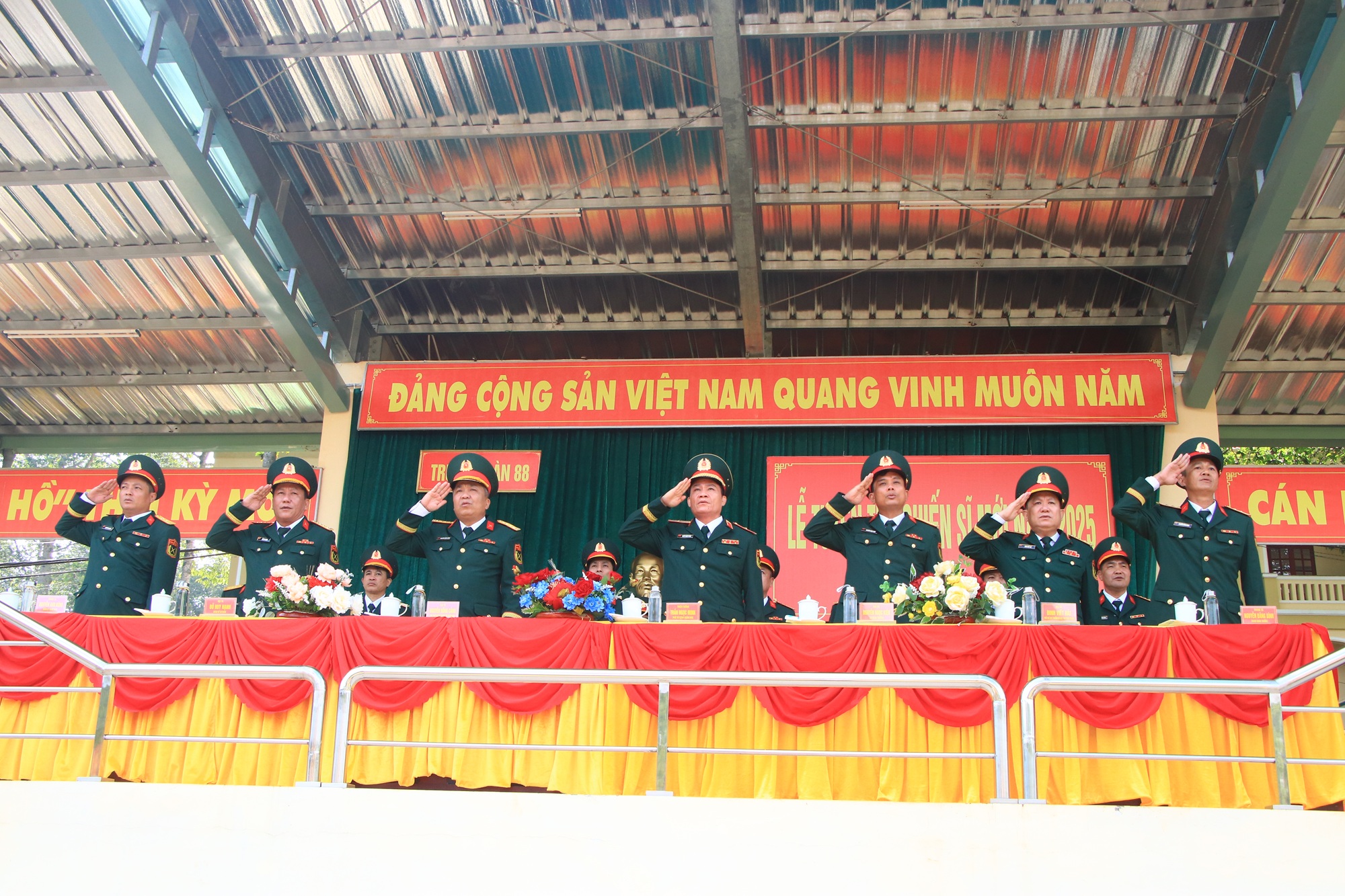 Đại diện chỉ huy Trung đoàn 88 báo cáo kết quả cuối khóa huấn luyện chiến sĩ mới nhập ngũ năm 2025.