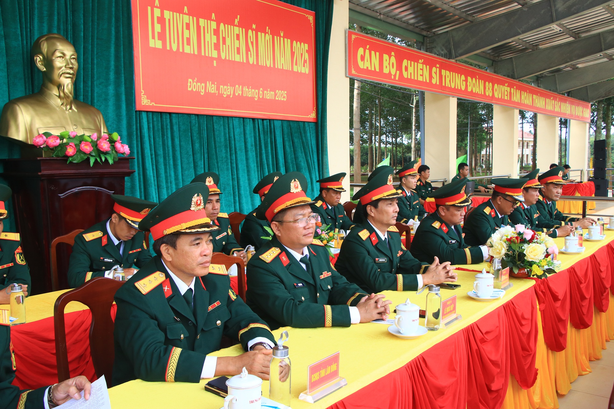 (QK7 Online) - Sáng ngày 4/6, Thiếu tướng Trần Ngọc Minh, Phó Tư lệnh Quân khu; Đại tá Nguyễn Hồng Cảnh, Phó Chủ nhiệm Chính trị Quân khu và đại diện các cơ quan chức năng Quân khu; Bộ CHQS các tỉnh Lâm Đồng, Bình Thuận; thủ trưởng Bộ chỉ huy Sư đoàn 302 đã dự Lễ tuyên thệ chiến sĩ mới nhập ngũ năm 2025 tại Trung đoàn 88, Sư đoàn 302.
