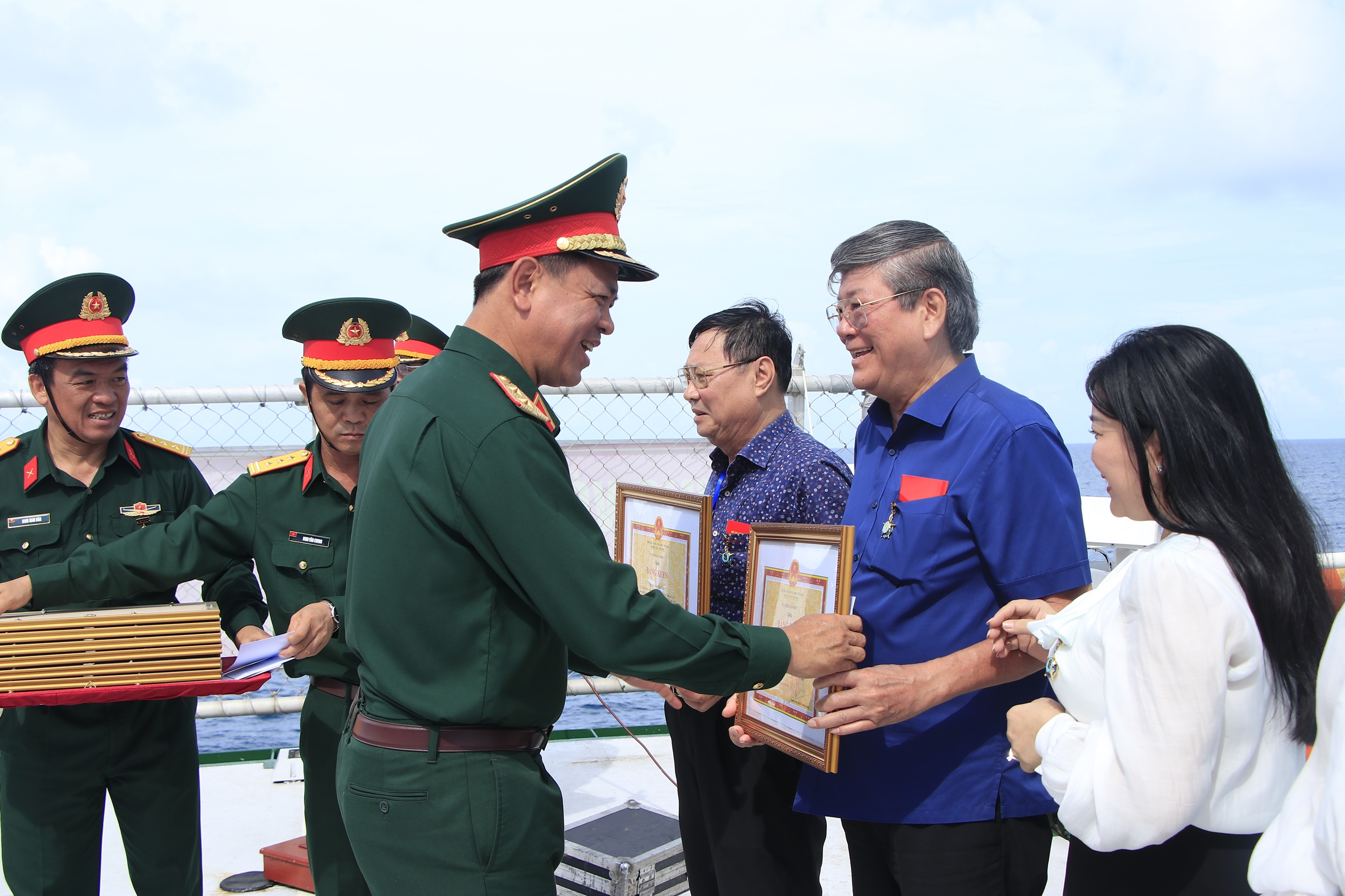Trung tướng Nguyễn Trường Thắng, Ủy viên Trung ương Đảng, Ủy viên Quân ủy Trung ương, Tư lệnh Quân khu tặng bằng khen của Quân khu cho các doanh nghiệp đồng hành cùng đoàn đại biểu LLVT Quân khu thăm, quân - dân huyện đảo Trường Sa và Nhà dàn DK-I năm 2023.