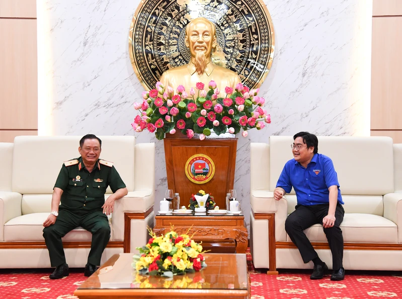 Thiếu tướng Trần Chí Tâm, Ủy viên Ban Thường vụ, Phó Chính ủy Quân khu 7 tiếp đoàn Thành đoàn Thành phố Hồ Chí Minh.