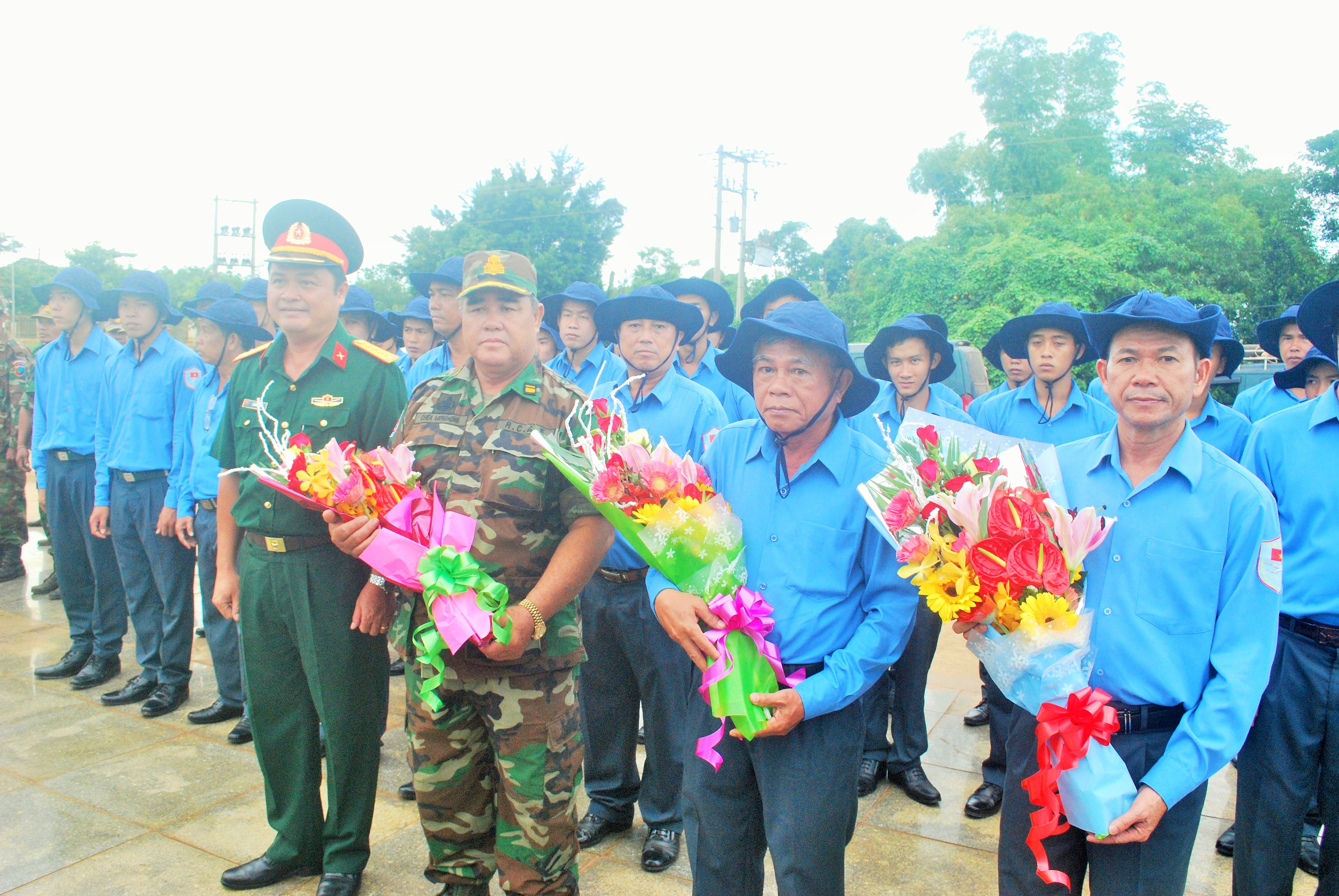 Đại tá Đỗ Văn Bảnh, Phó Chủ nhiệm Chính trị Quân khu 7 tặng hoa các đội.
