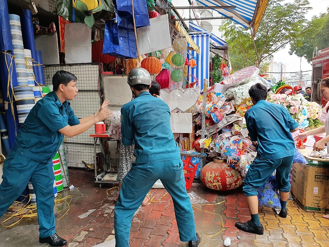 Do trong cửa hàng chứa nhiều vật dụng dễ bắt lửa rất dễ cháy lan nên các chiến sĩ dân quân đã nhanh chóng di dời đồ đạc đến nơi an toàn chống cháy lan. Do sự hiếu kỳ của người dân đi đường nên đã gây ách tắc, lực lượng dân quân phối hợp với các lực lượng chức năng phân luồng điều tiết giao thông trên khu vực cháy. Đến 9 giờ 40 phút đám cháy đã tắt hoàn toàn, vụ cháy không gây thương tích về người nhưng một số đồ đạc bị hư hỏng.