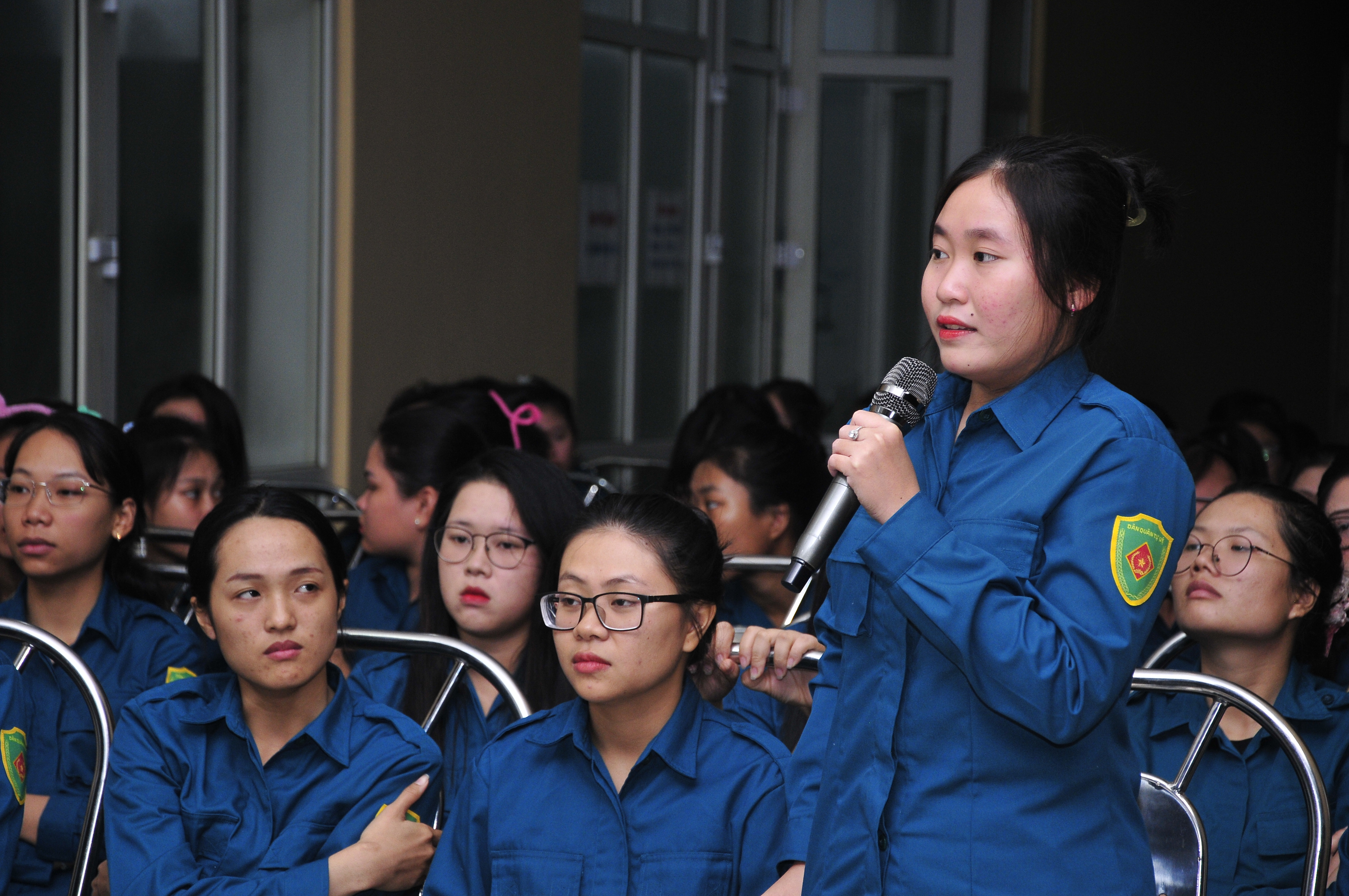 Chiến sĩ Lý Mỹ Phụng phát biểu ý kiến tại buổi sinh hoạt.