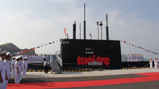 Sự kiện tiếp nhận và chính thức đưa chiếc tàu ngầm Kilo 636 đầu tiên, số hiệu HQ 182 - Chiếc tàu ngầm vinh dự được mang tên Thủ đô Hà Nội vào biên chế của Lữ đoàn 189 Hải quân là thành công bước đầu rất quan trọng trong lộ trình xây dựng và phát triển lực lượng tàu ngầm hiện đại của Hải quân nhân dân Việt Nam. (Ảnh: Tuổi Trẻ)