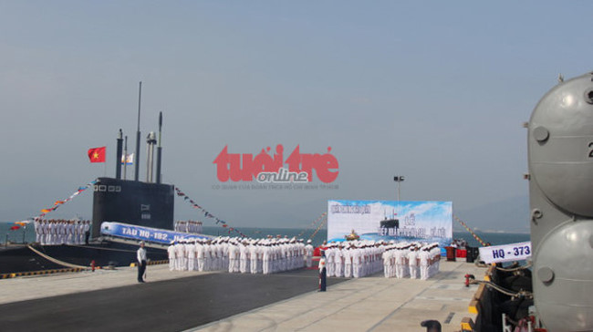 Sáng 15/1/2014, tại Quân cảng Lữ đoàn Tàu ngầm 189, Căn cứ Cam Ranh, Bộ Tư lệnh Quân chủng Hải quân tổ chức Lễ tiếp nhận tàu ngầm HQ-182 Hà Nội. (Ảnh: Tuổi Trẻ)