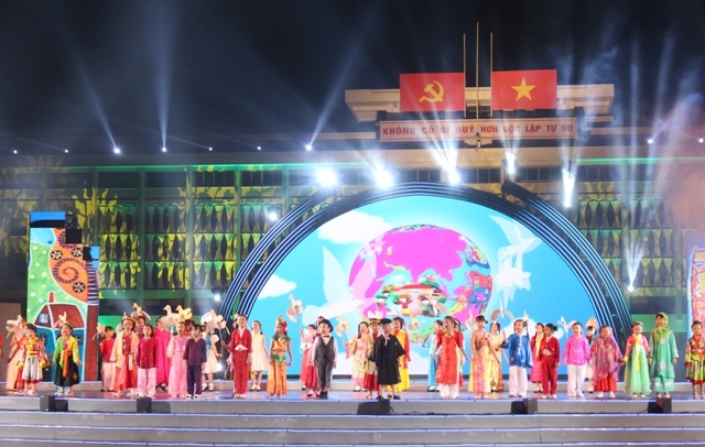 Các em thiếu nhi trong tiết mục “Khát khao hòa bình”