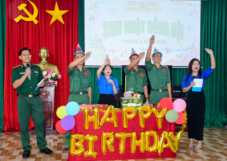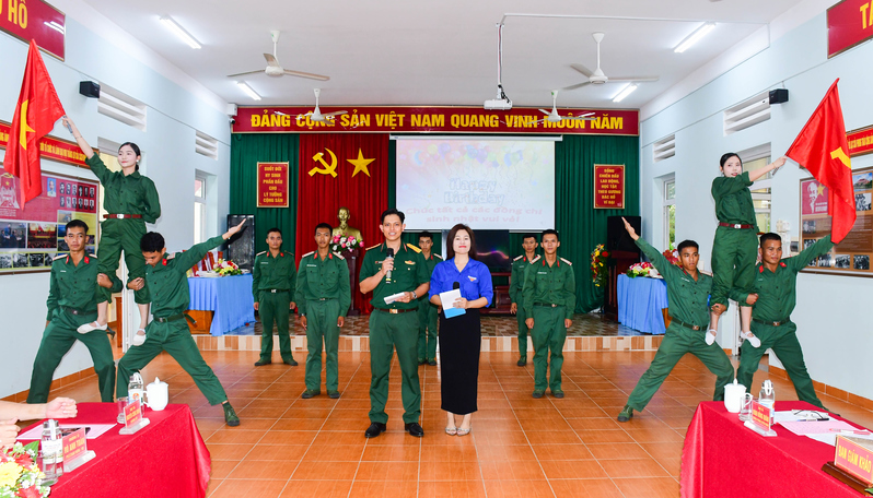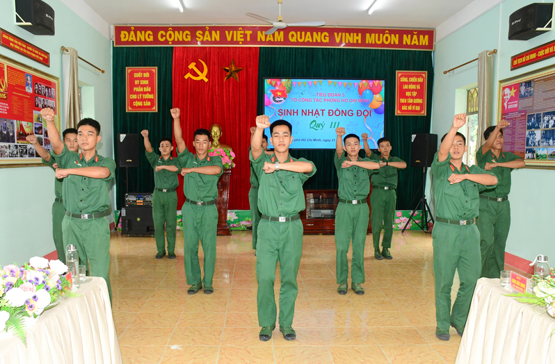 Tiết mục văn nghệ trong chương trình sinh nhật tập thể của Tiểu đoàn 21, Lữ đoàn 26.
