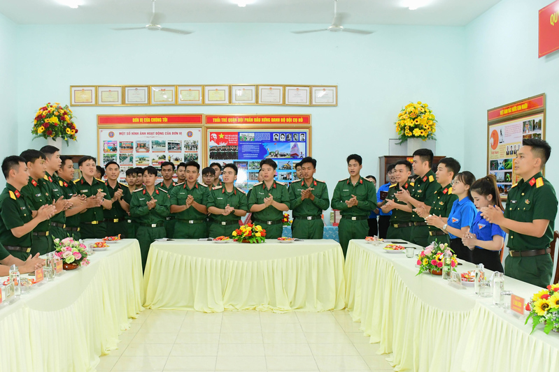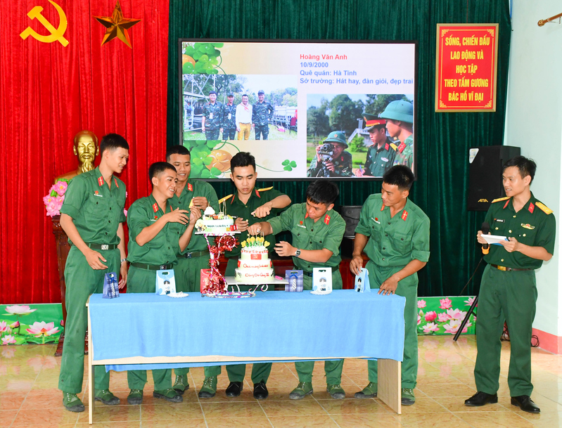 Cán bộ, chiến sĩ Tiểu đoàn 3, Lữ đoàn 77 thắp nến trong buổi sinh nhật tập thể .